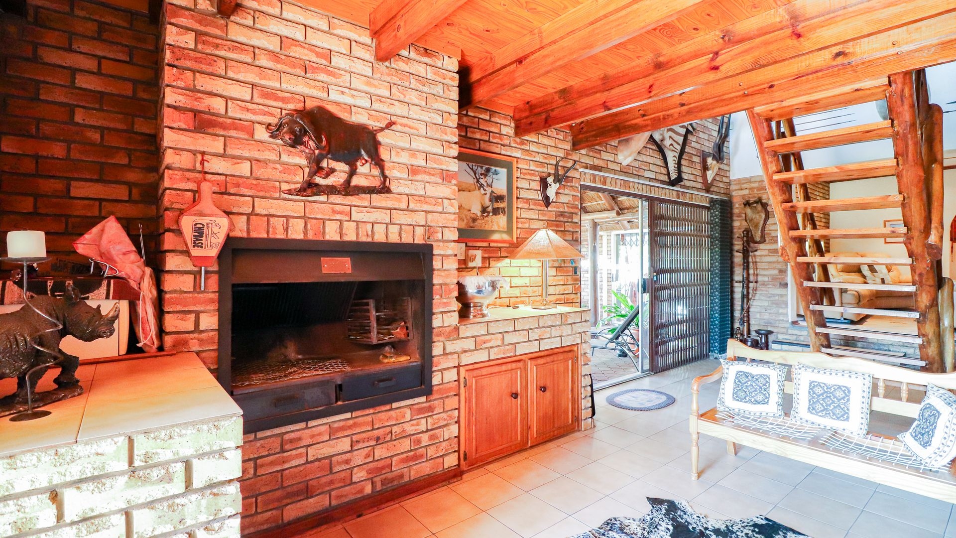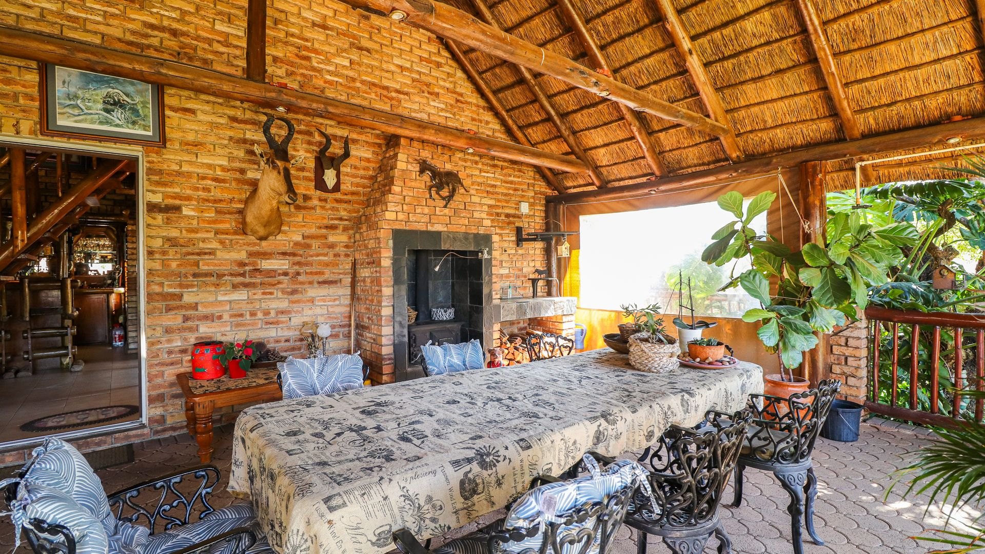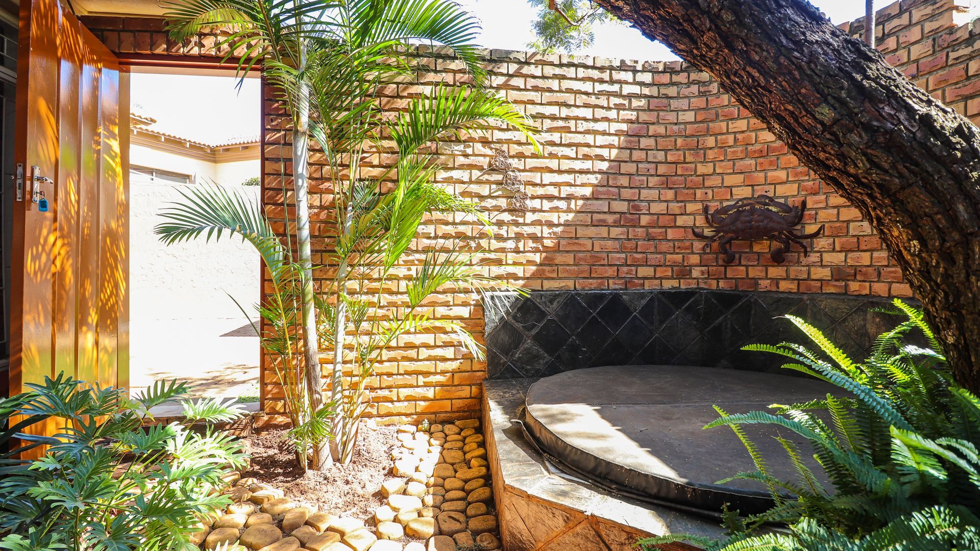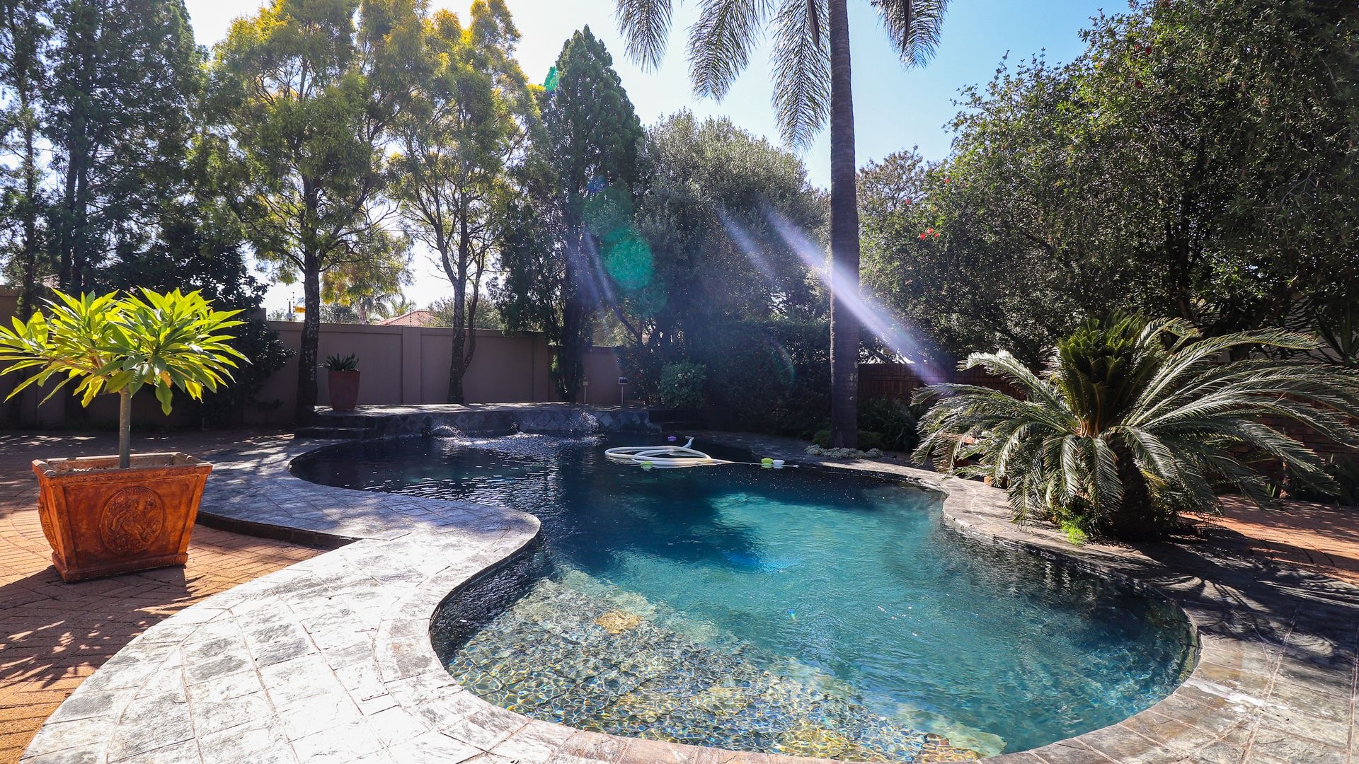 Step outside and you’ll find a beautiful garden, including a covered patio with an outdoor dining space, a built-in braai, and a beautifully landscaped garden. The highlight is the sparkling swimming pool and jacuzzi, creating a perfect retreat for both relaxation and socializing on warm days or cool evenings.