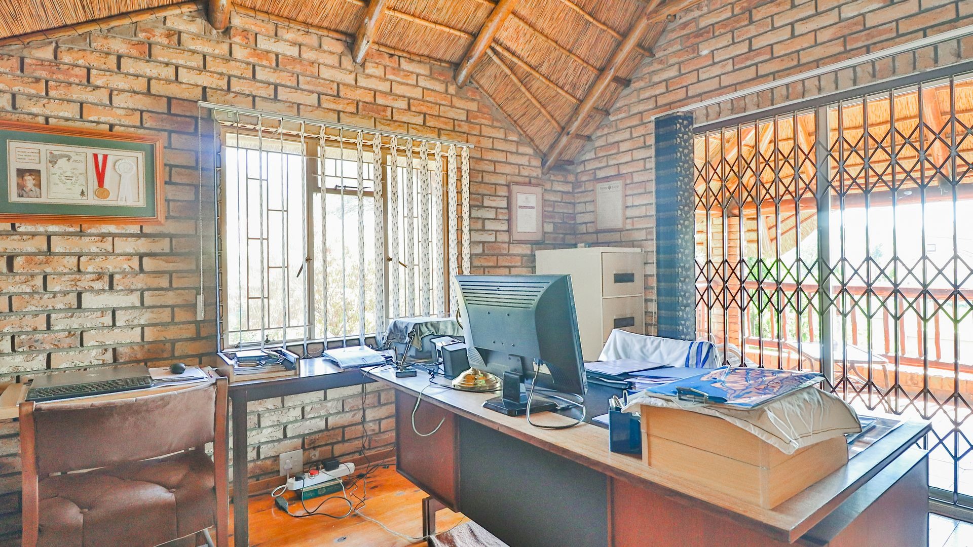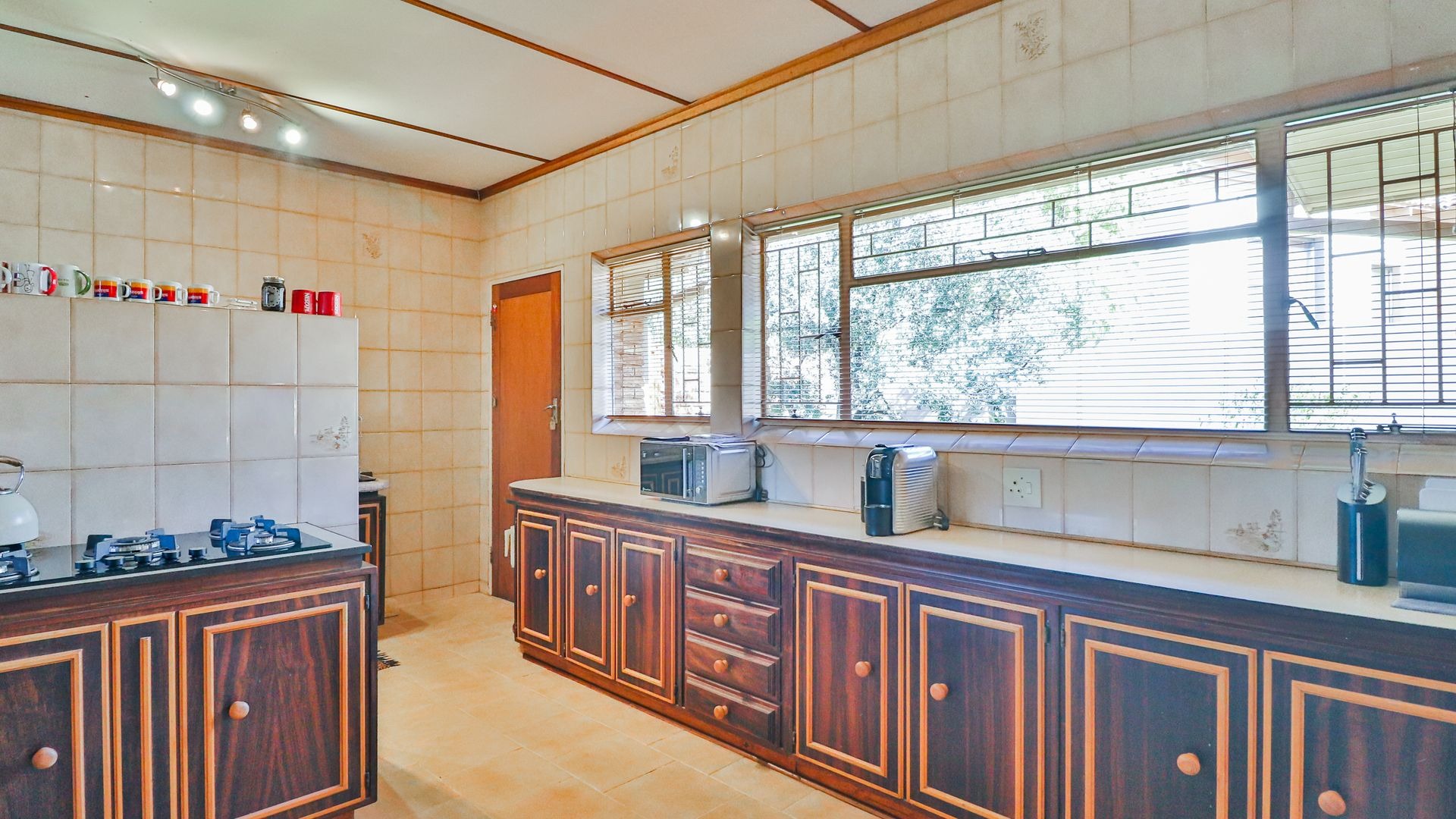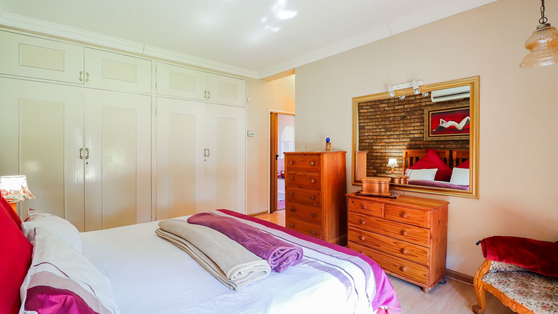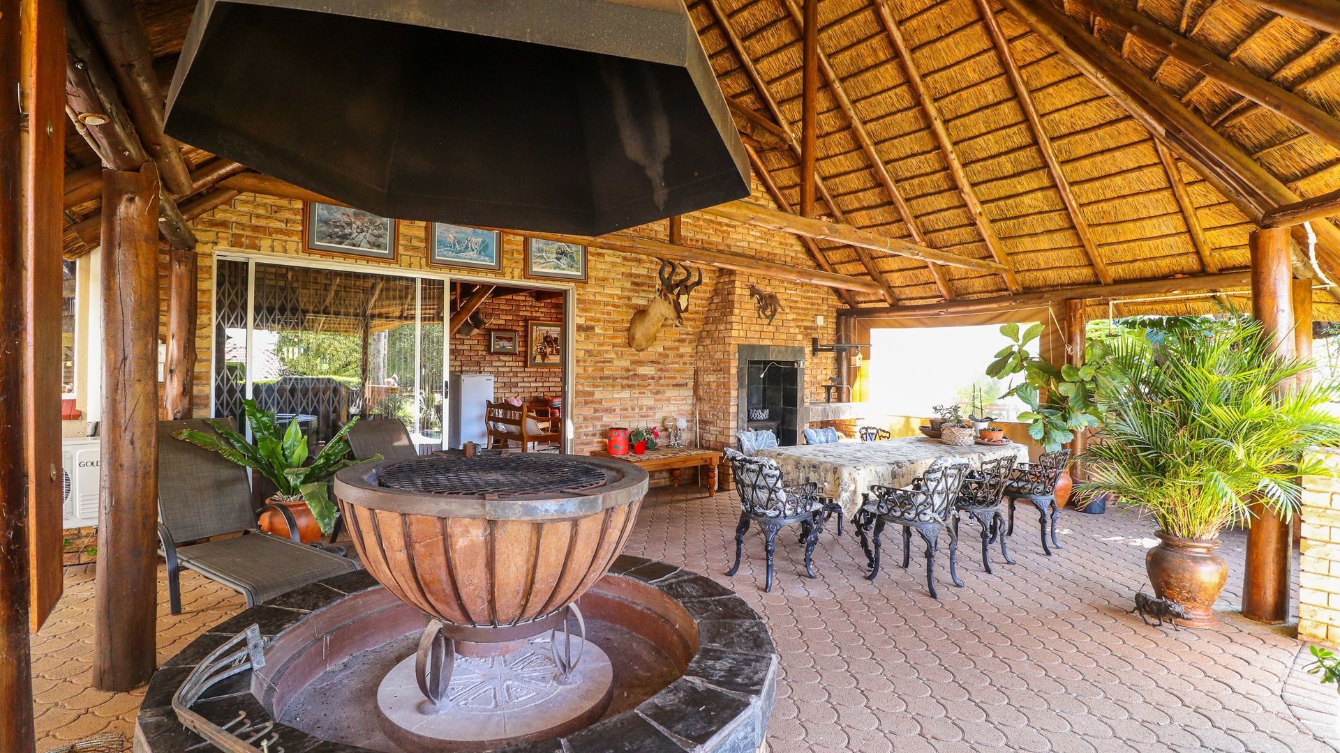 Step outside and you’ll find a beautiful garden, including a covered patio with an outdoor dining space, a built-in braai, and a beautifully landscaped garden. The highlight is the sparkling swimming pool and jacuzzi, creating a perfect retreat for both relaxation and socializing on warm days or cool evenings.