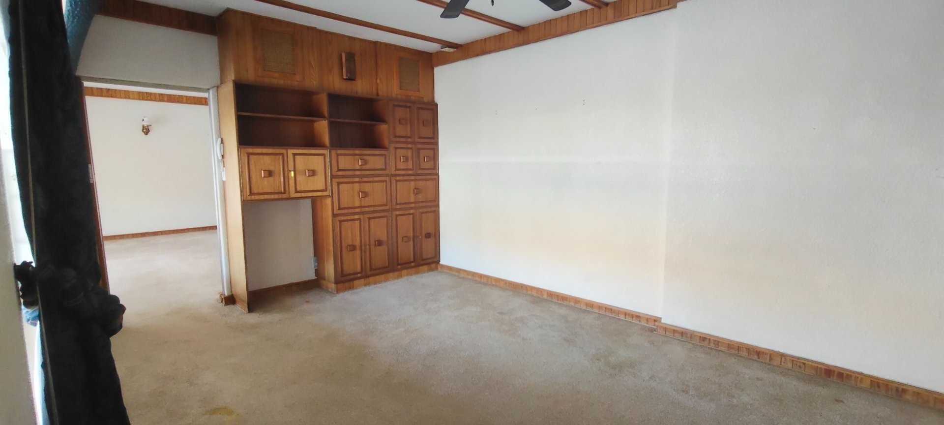 The open-plan living and dining area flows seamlessly into a functional kitchen, creating a welcoming environment perfect for both relaxation and entertaining. Large windows allow natural light to fill the space, enhancing the home’s warm and airy feel.