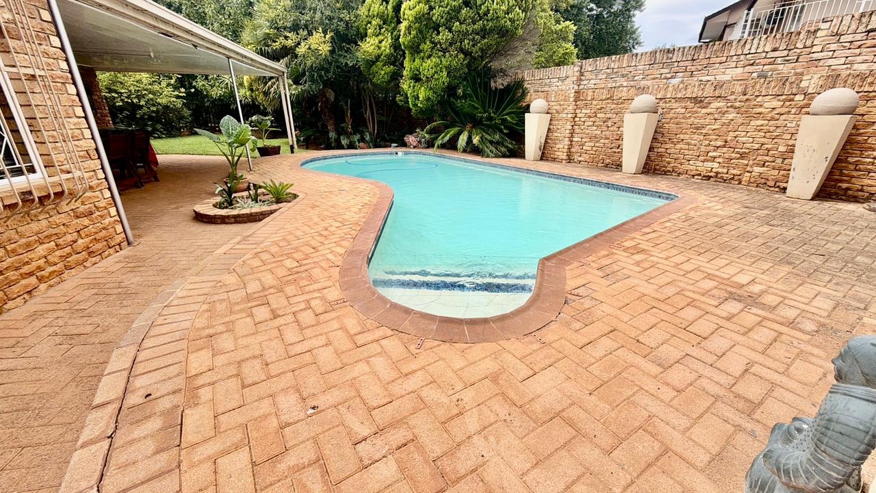 Externally, the property excels with a beautifully maintained private garden, a refreshing swimming pool perfect for warm days, and a built-in braai area for alfresco dining and entertaining. A paved driveway leads to a secure double garage, offering ample parking. The inclusion of a borehole ensures efficient and sustainable garden irrigation.