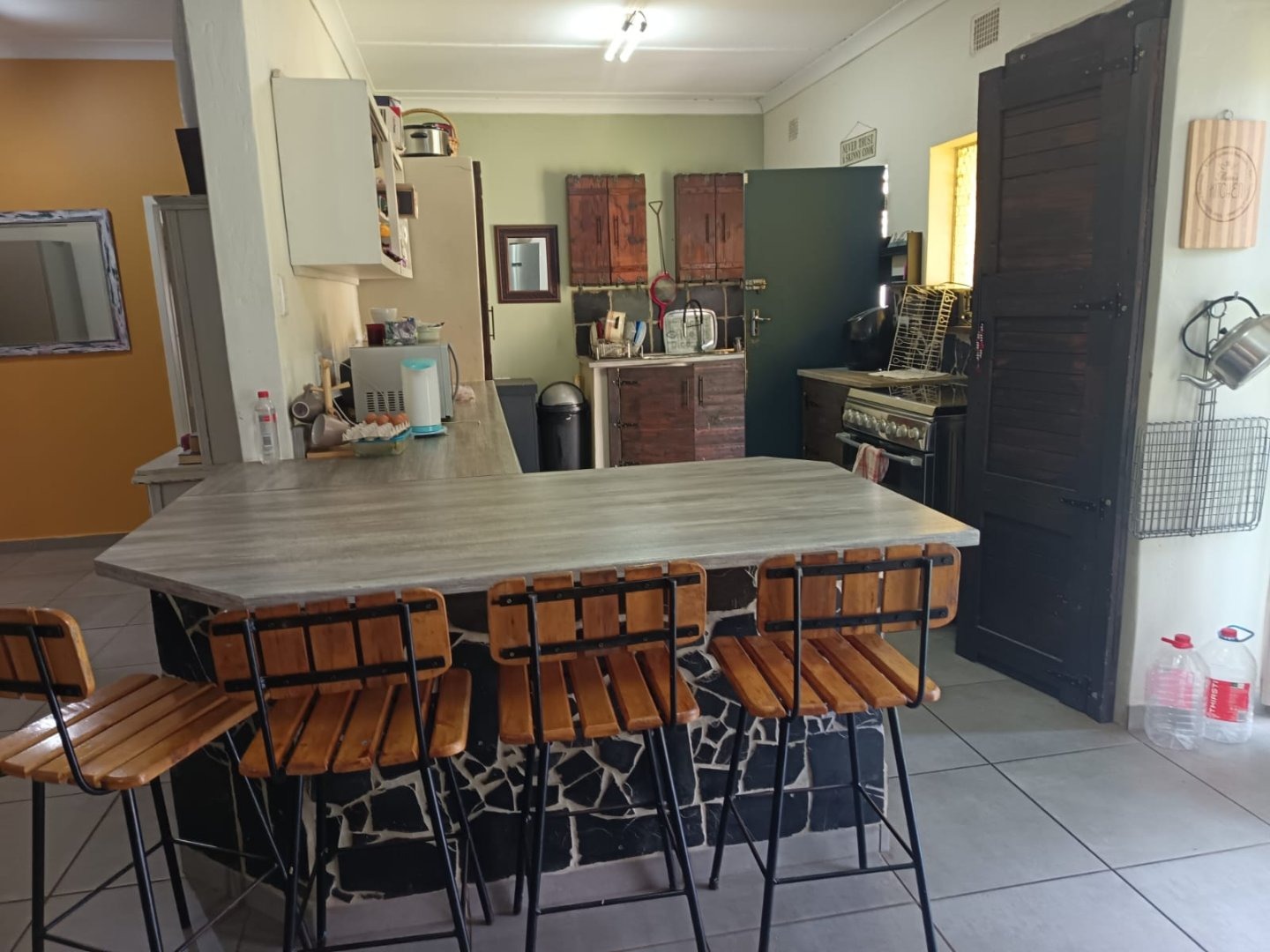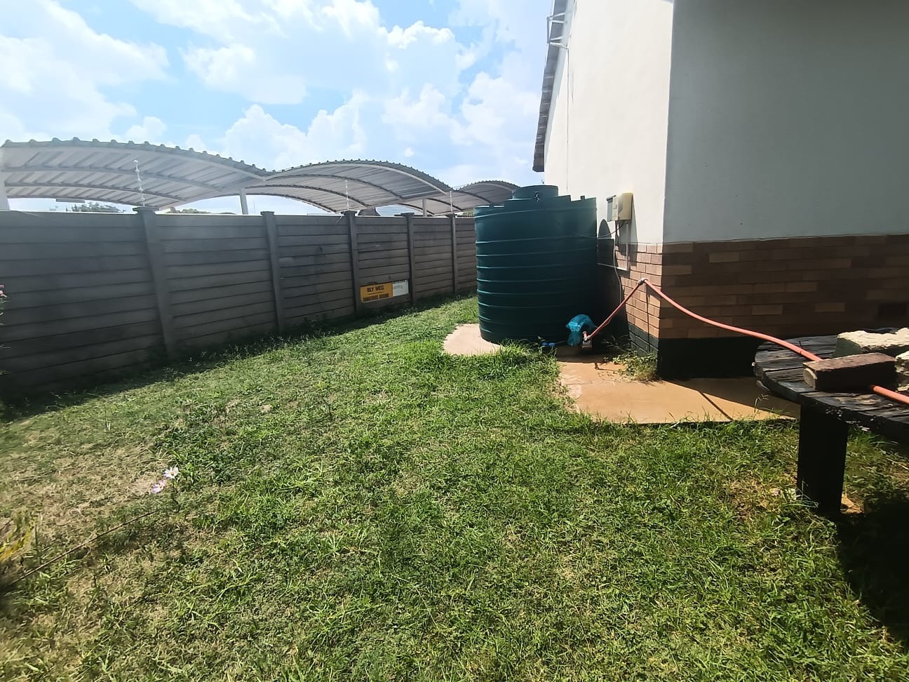 The property is well-equipped with a borehole and JoJo tank, ensuring reliable water supply, as well as an alarm system with beams and electric fencing for enhanced security and peace of mind.