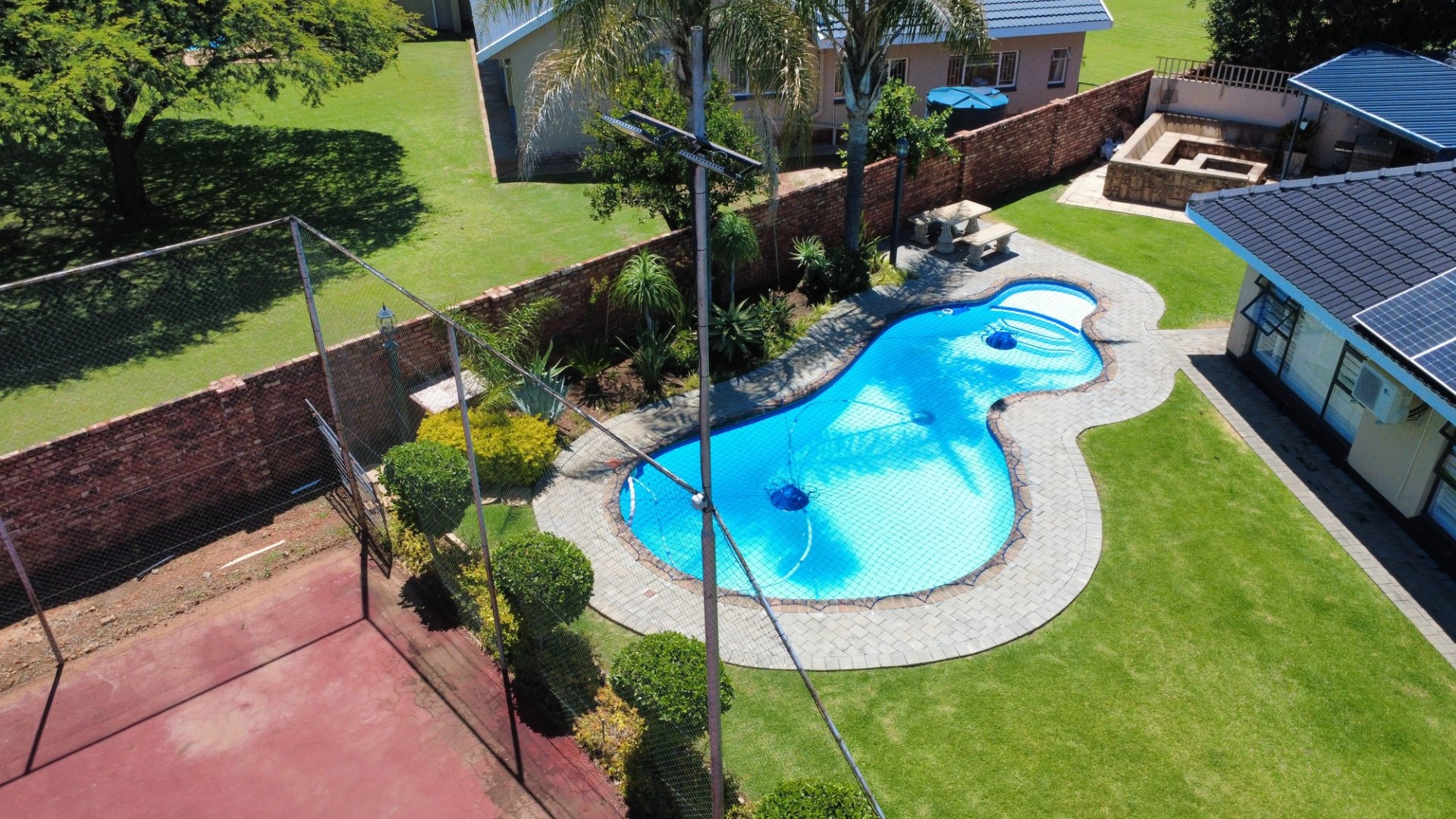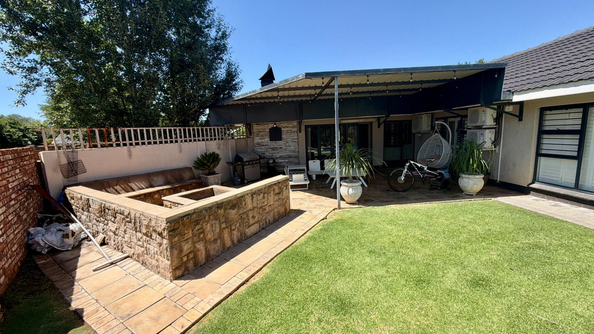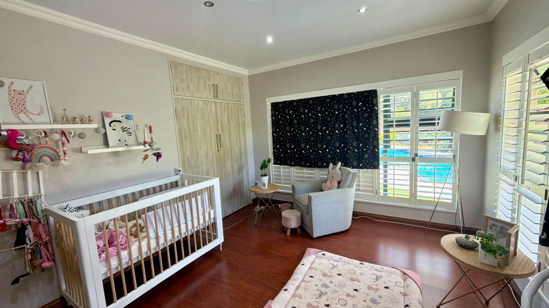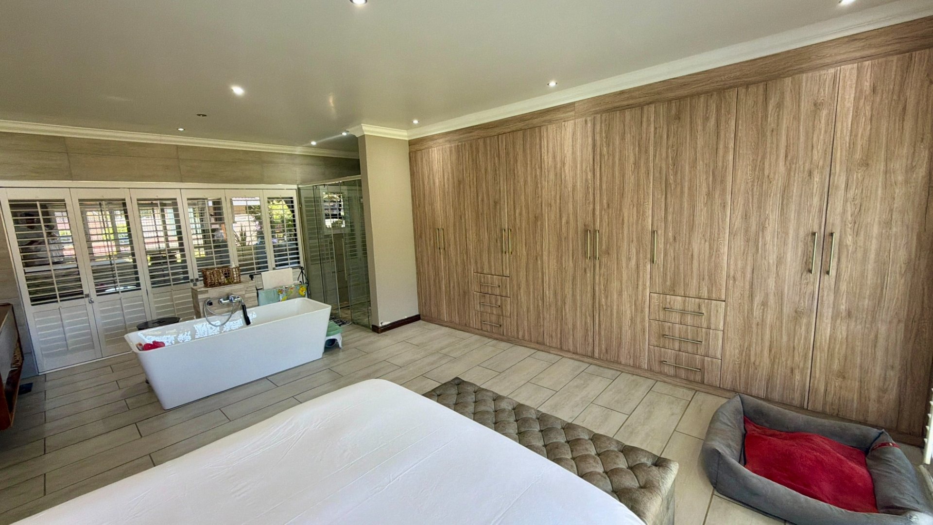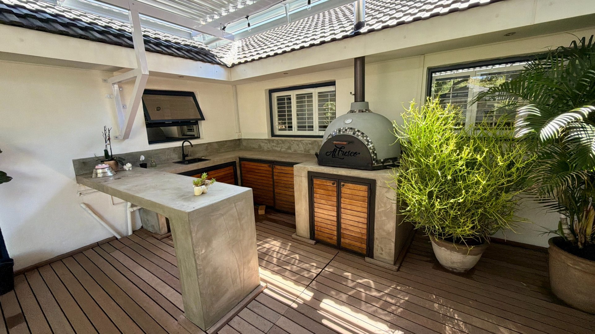 The designer open-plan kitchen forms the heart of the home for the ladies, whereas for the men the entertainment zone which consists of built-in bar and built-in braai with stack doors that lead to the sparkling pool and patio area with boma, creates a beautiful setting for hosting family and friends all year round.