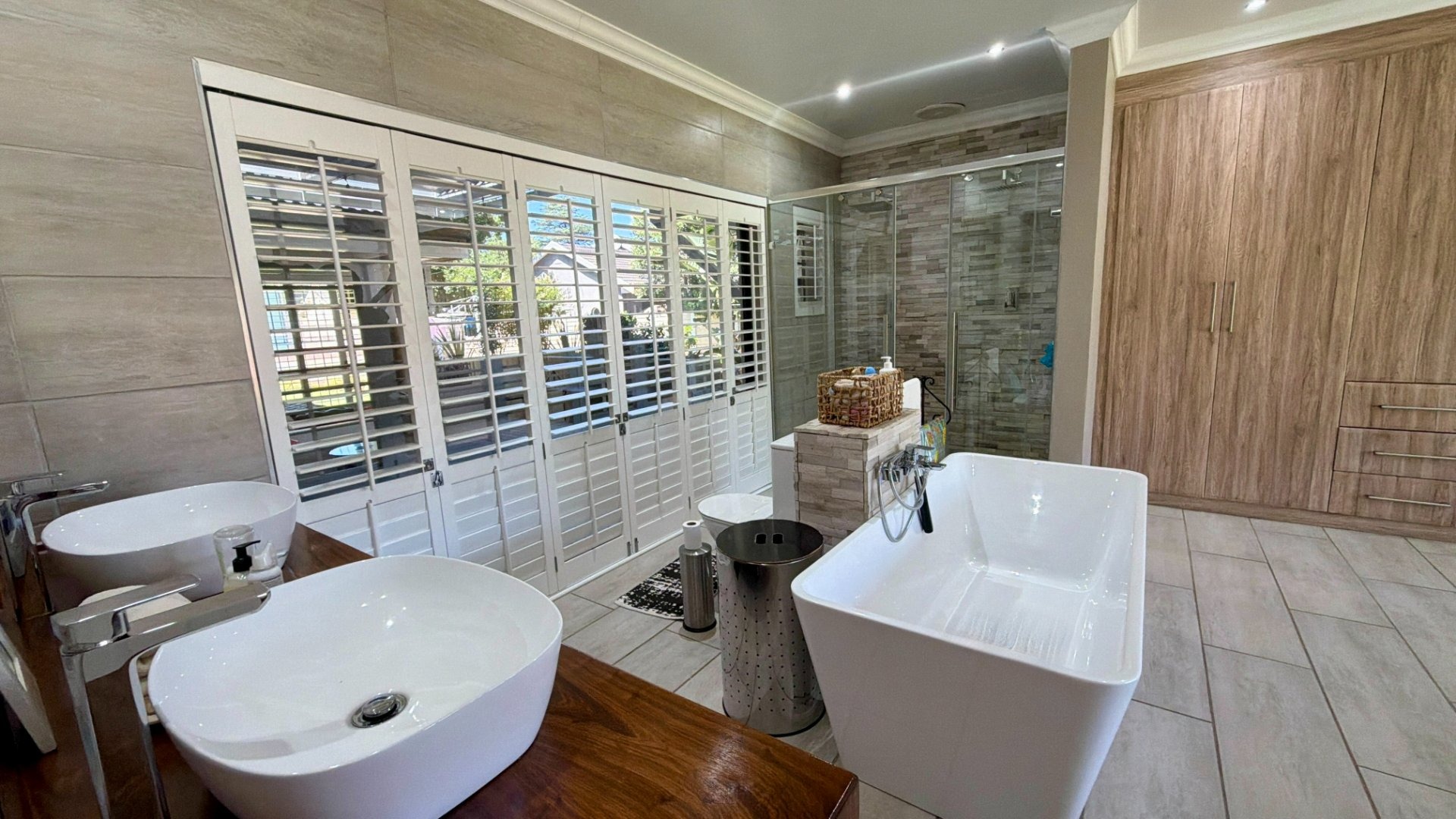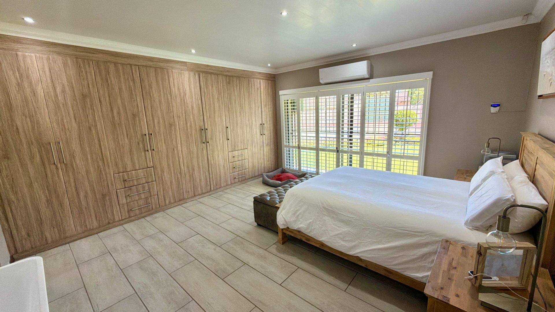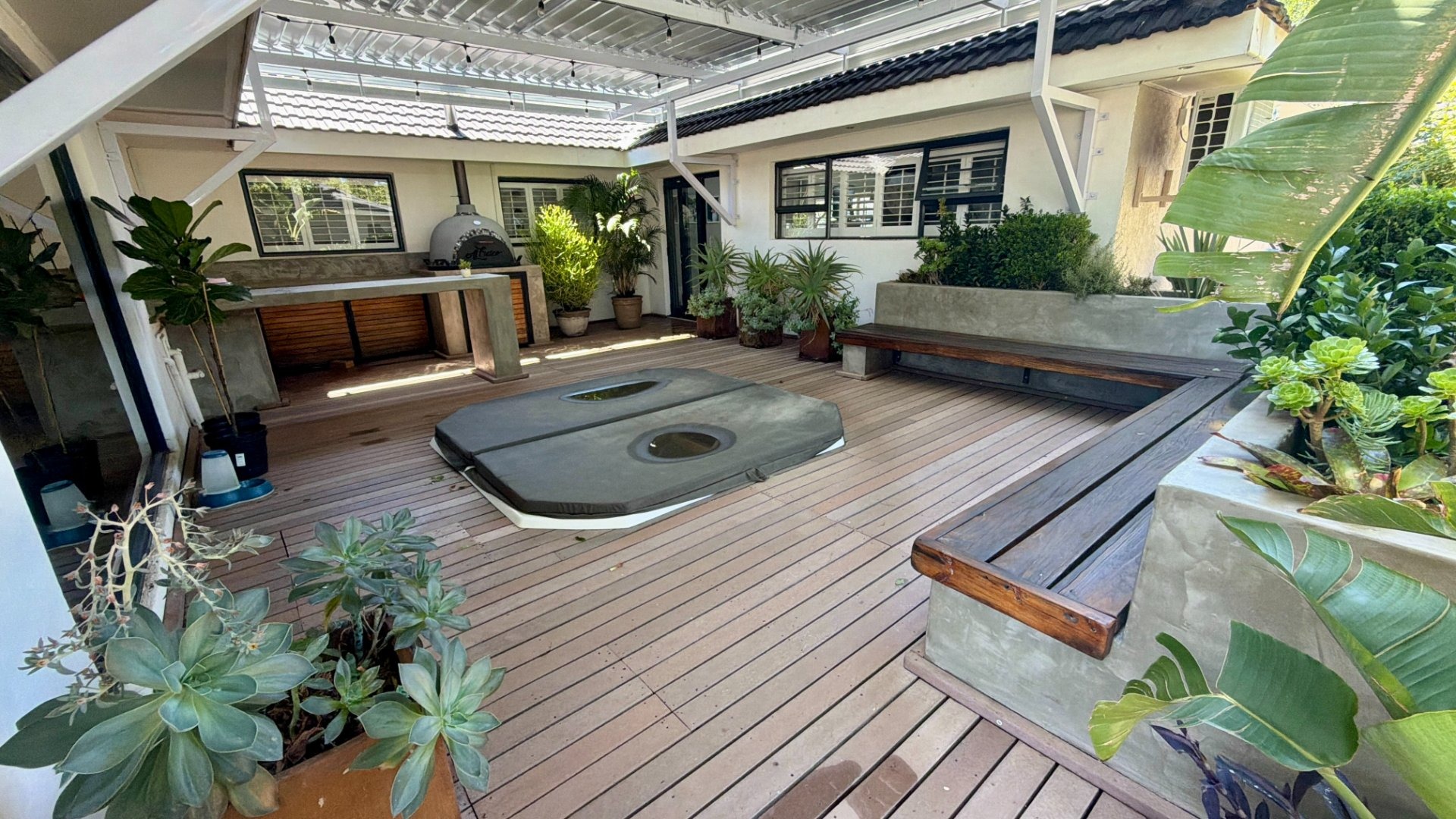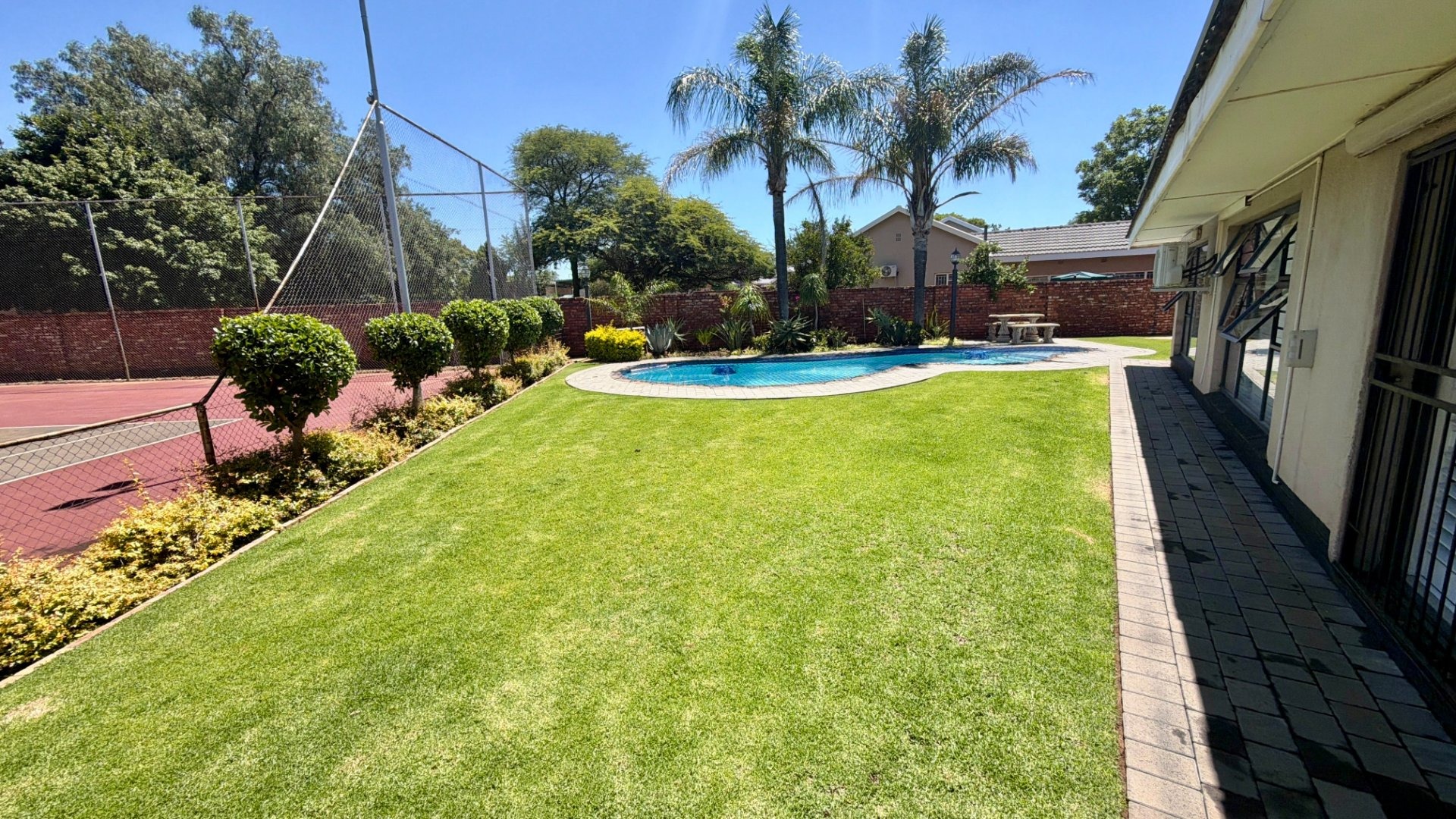 The designer open-plan kitchen forms the heart of the home for the ladies, whereas for the men the entertainment zone which consists of built-in bar and built-in braai with stack doors that lead to the sparkling pool and patio area with boma, creates a beautiful setting for hosting family and friends all year round.