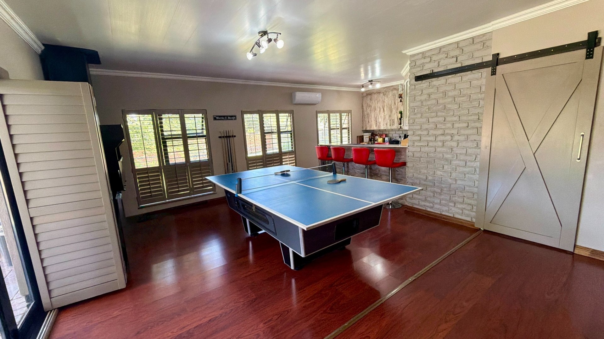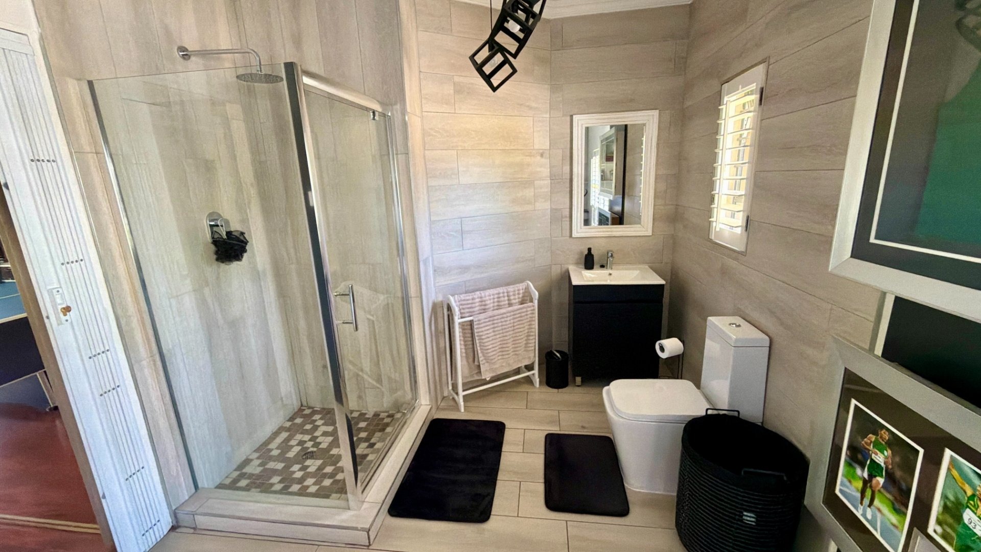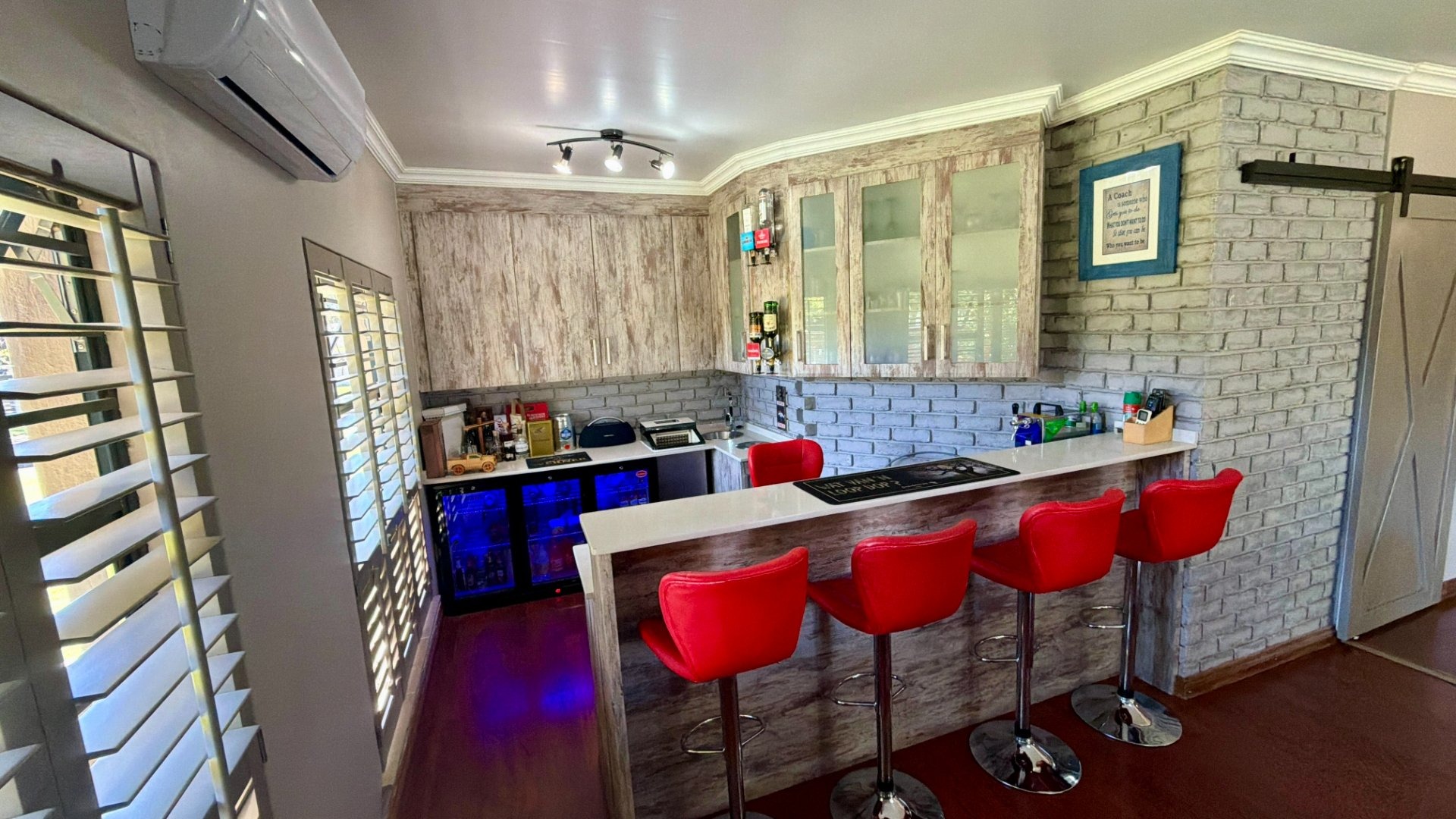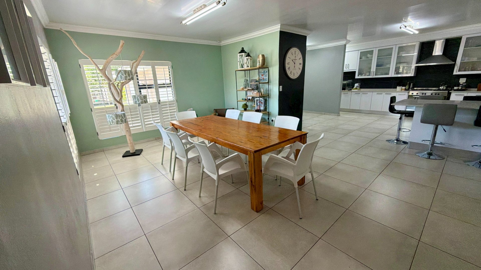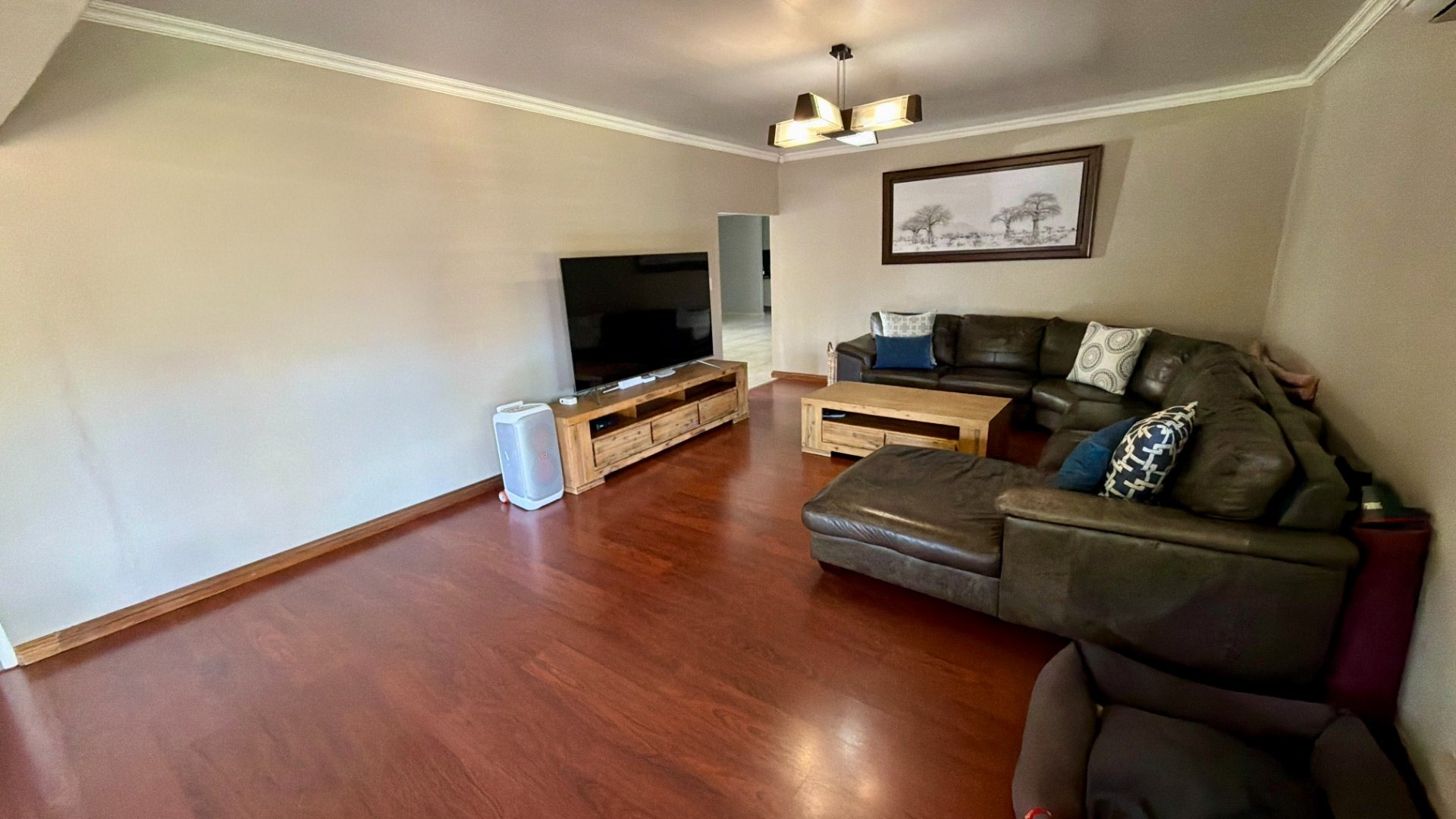 The designer open-plan kitchen forms the heart of the home for the ladies, whereas for the men the entertainment zone which consists of built-in bar and built-in braai with stack doors that lead to the sparkling pool and patio area with boma, creates a beautiful setting for hosting family and friends all year round.