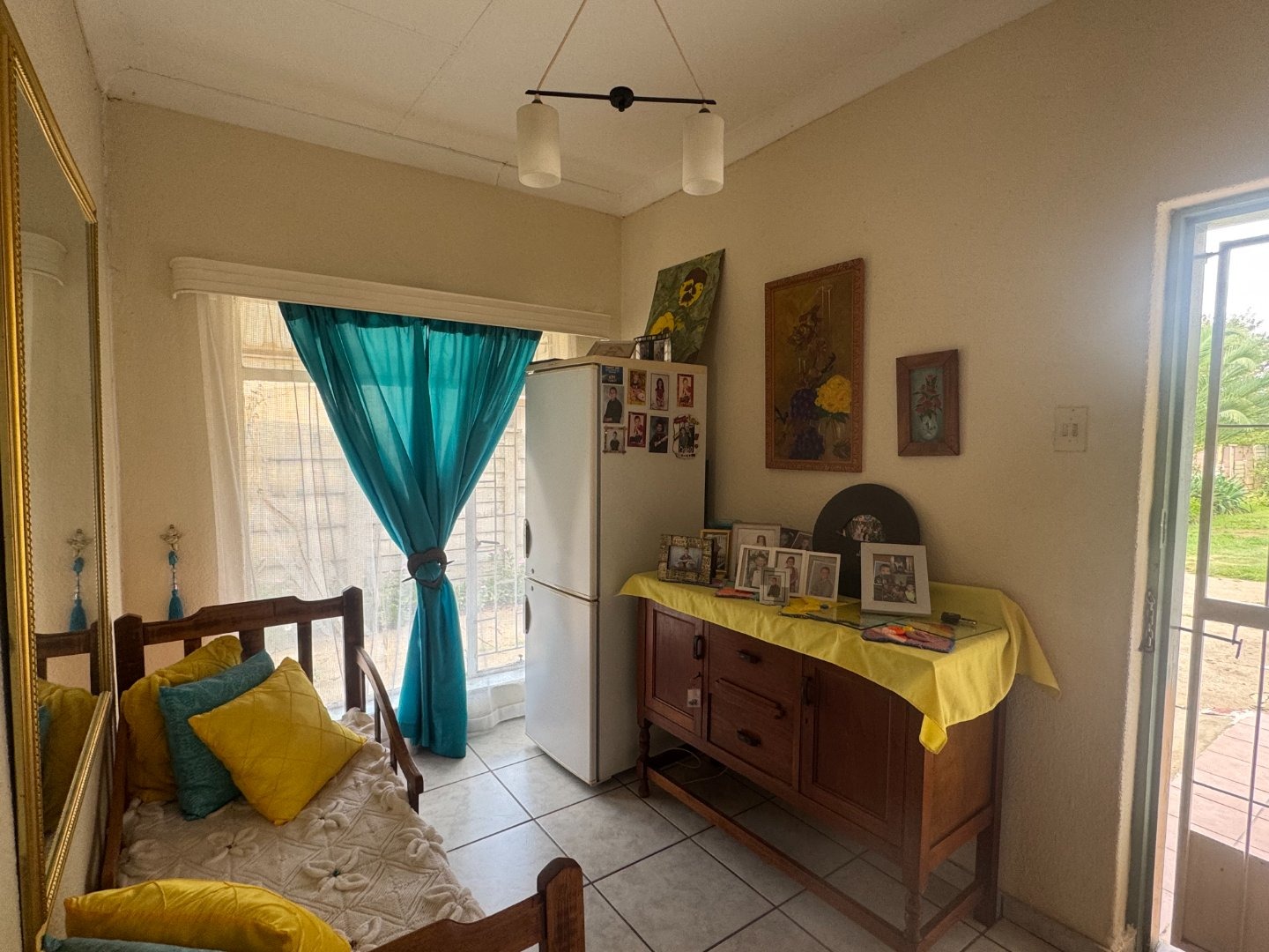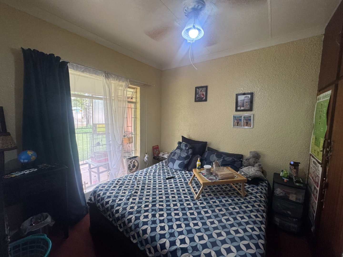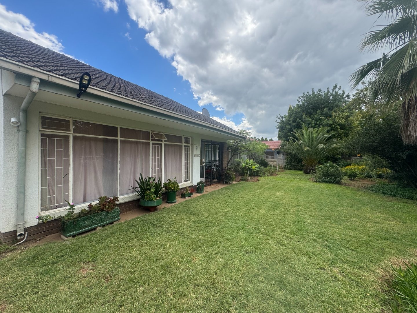 The yard is fully walled with electric fence in front.