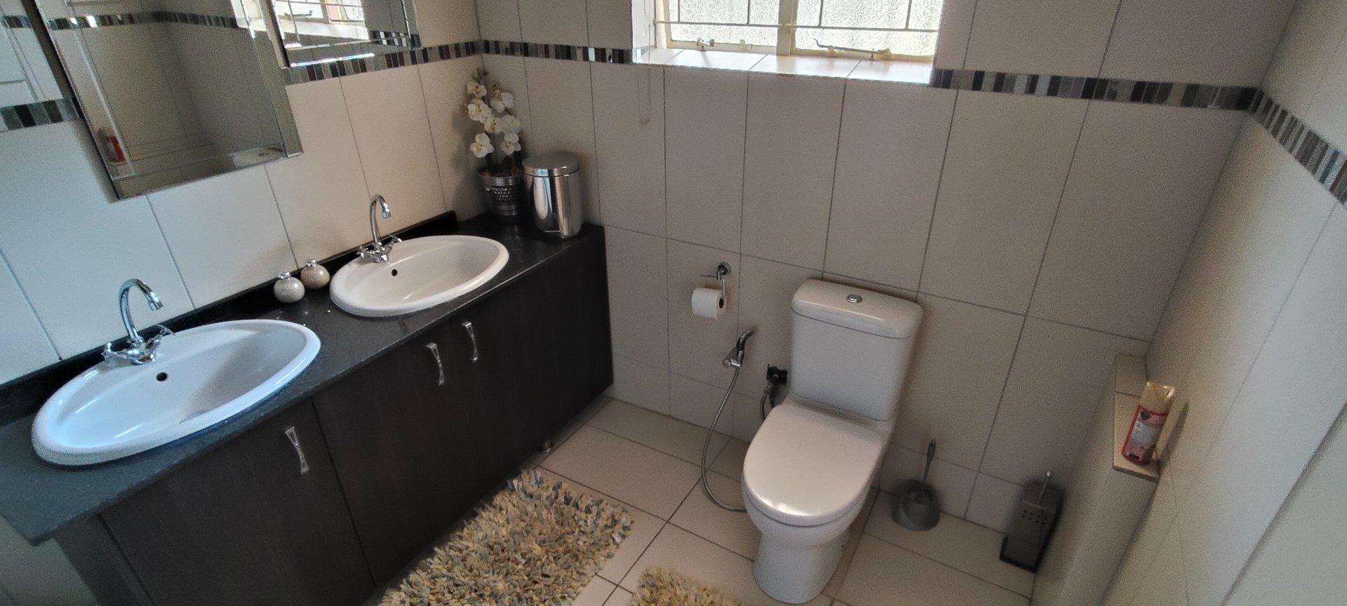 Large windows fill the home with natural light, while the layout ensures both privacy and convenience. Two main bedrooms have en-suite bathrooms. The additional bedrooms are well-sized with plenty of built-in storage.