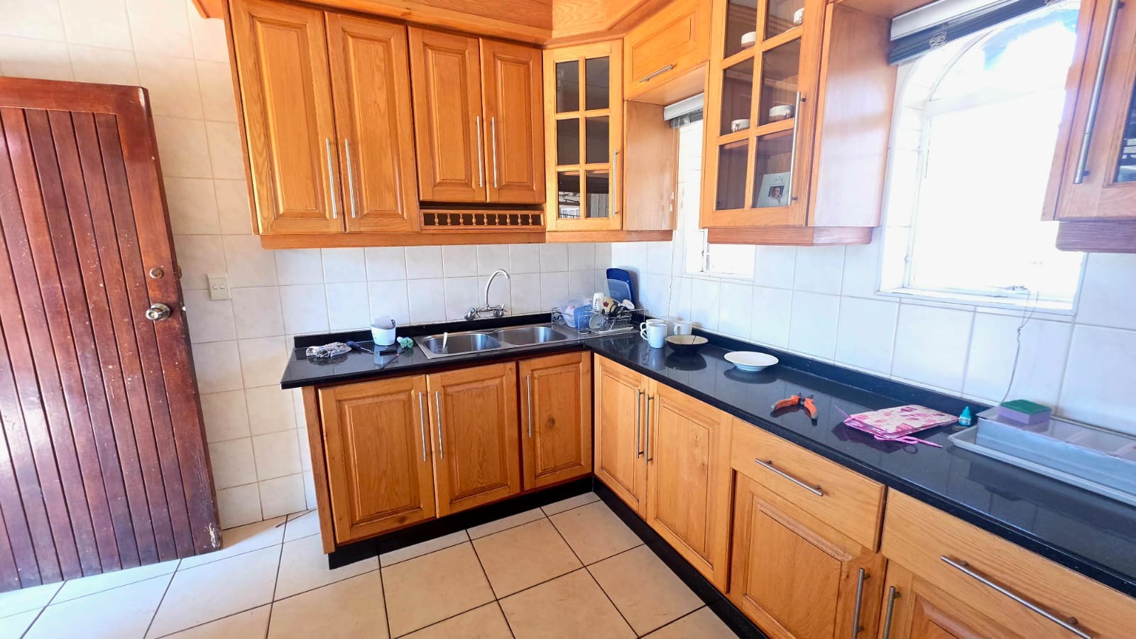 - Large kitchen with beautiful yellow oak wood cupboards & granite finishes