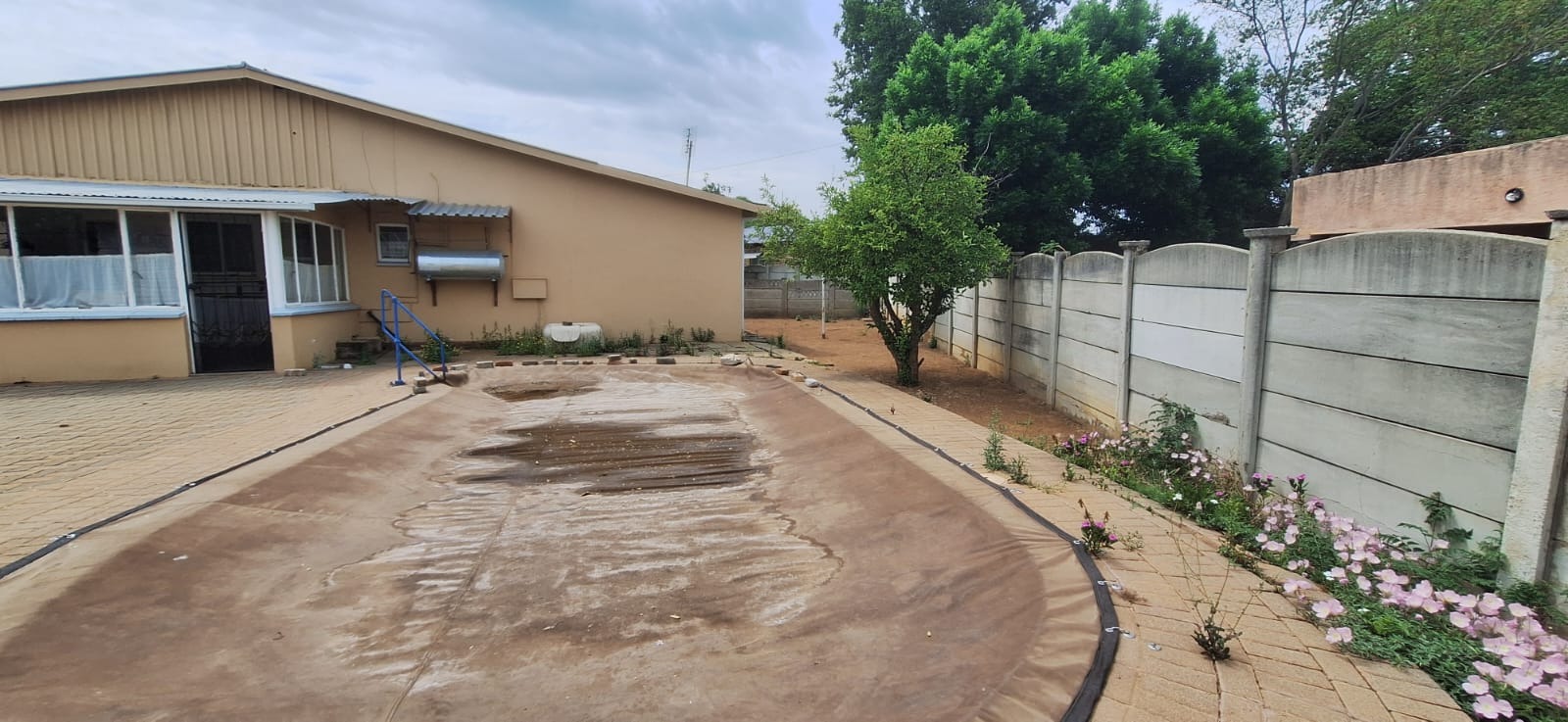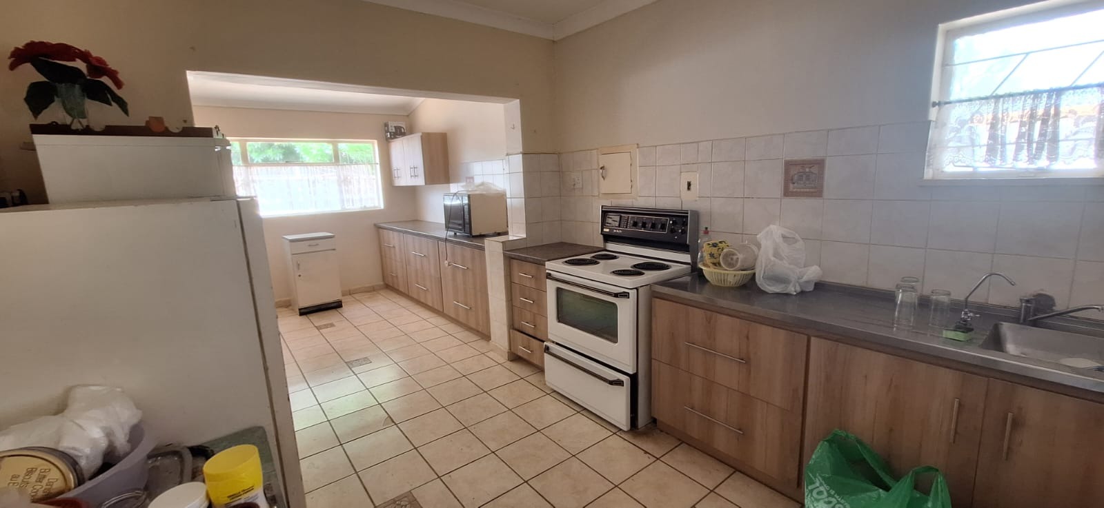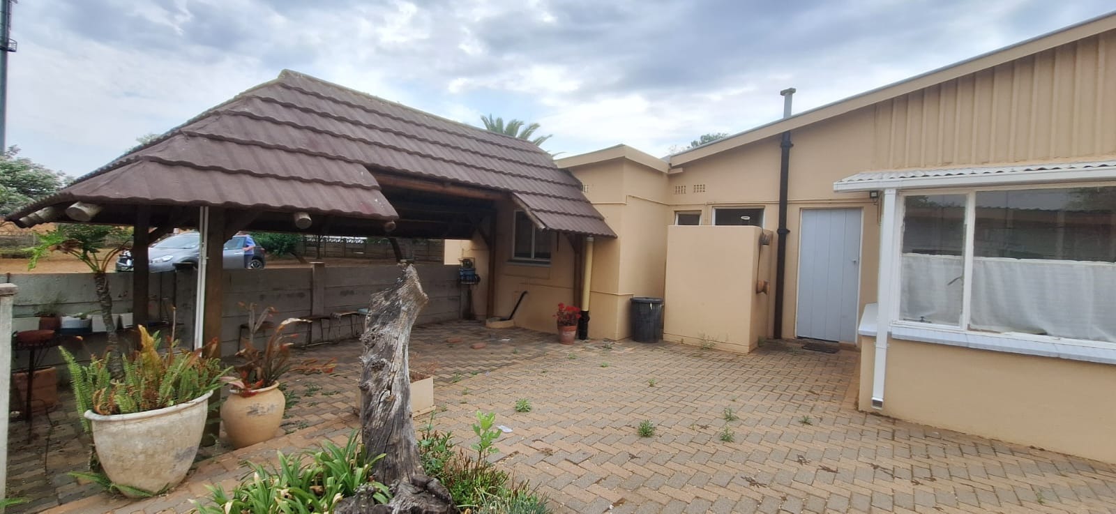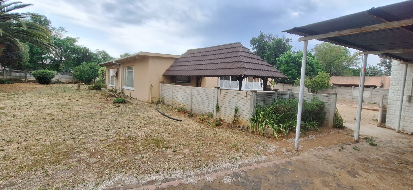 Located in suburban Roosheuwel, Klerksdorp, this property offers a spacious 1969 sqm erf. The 3-bedroom, 2-bathroom home includes a lounge, dining room, and kitchen, with one en-suite. Outdoors, find a large garden, paved driveway, covered carport, and a swimming pool. Security is provided by an alarm, burglar bars, security gate, and a fully walled perimeter.