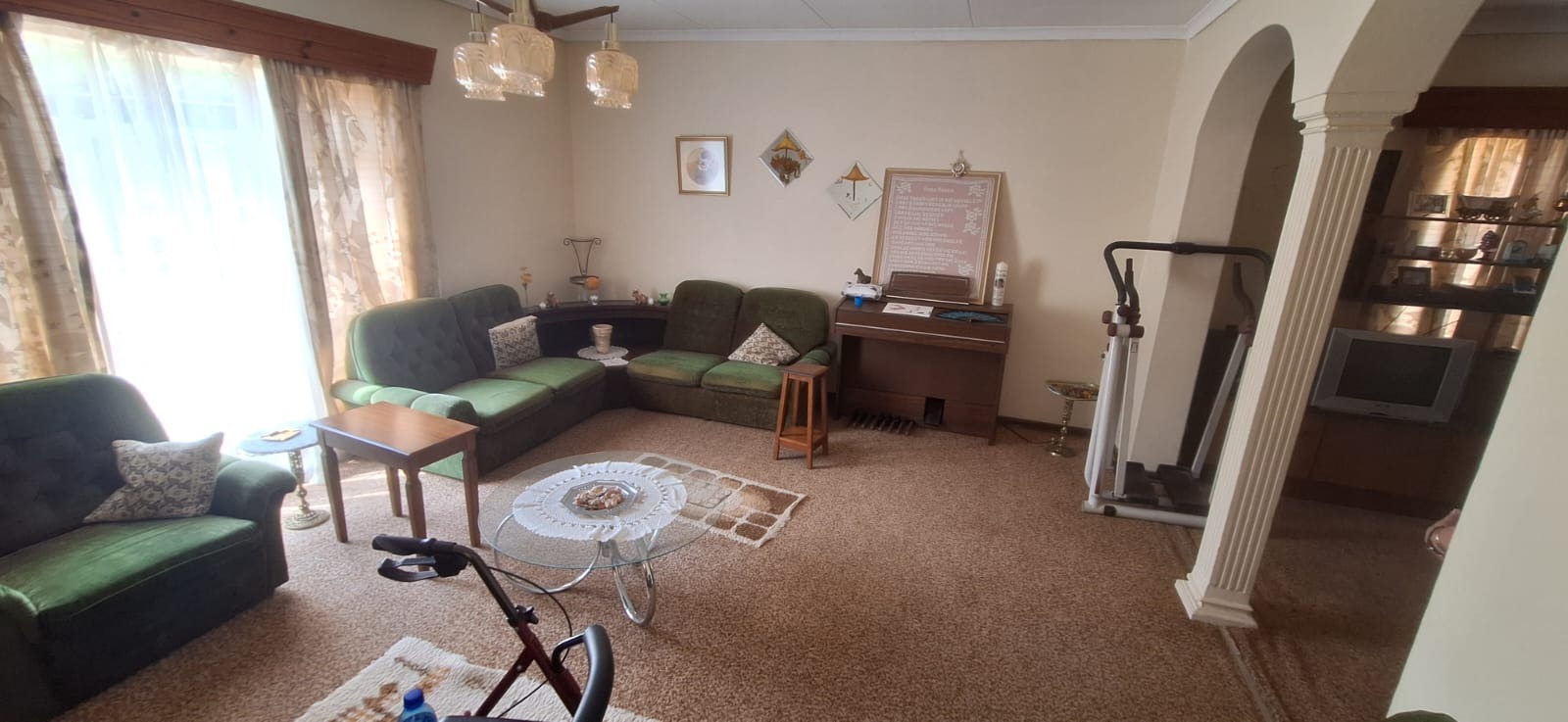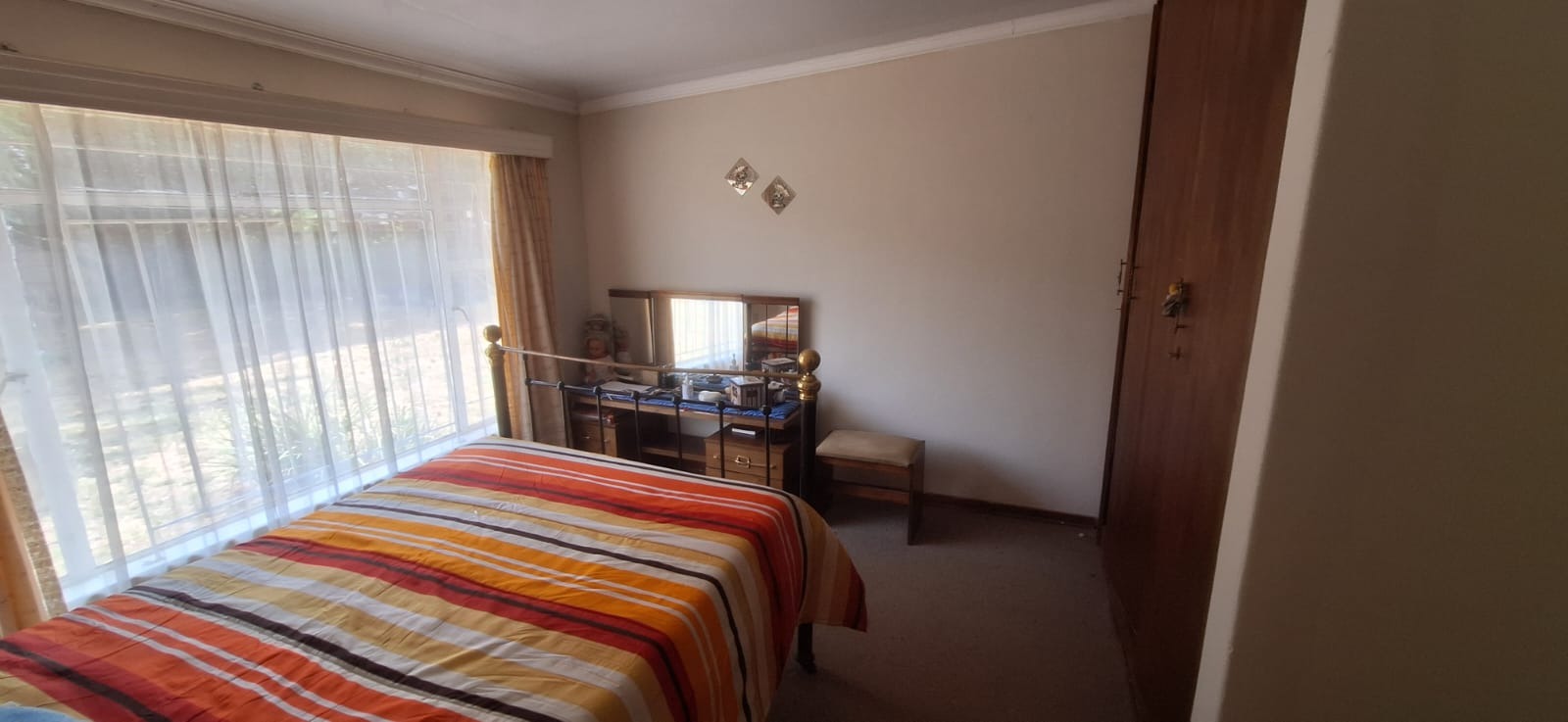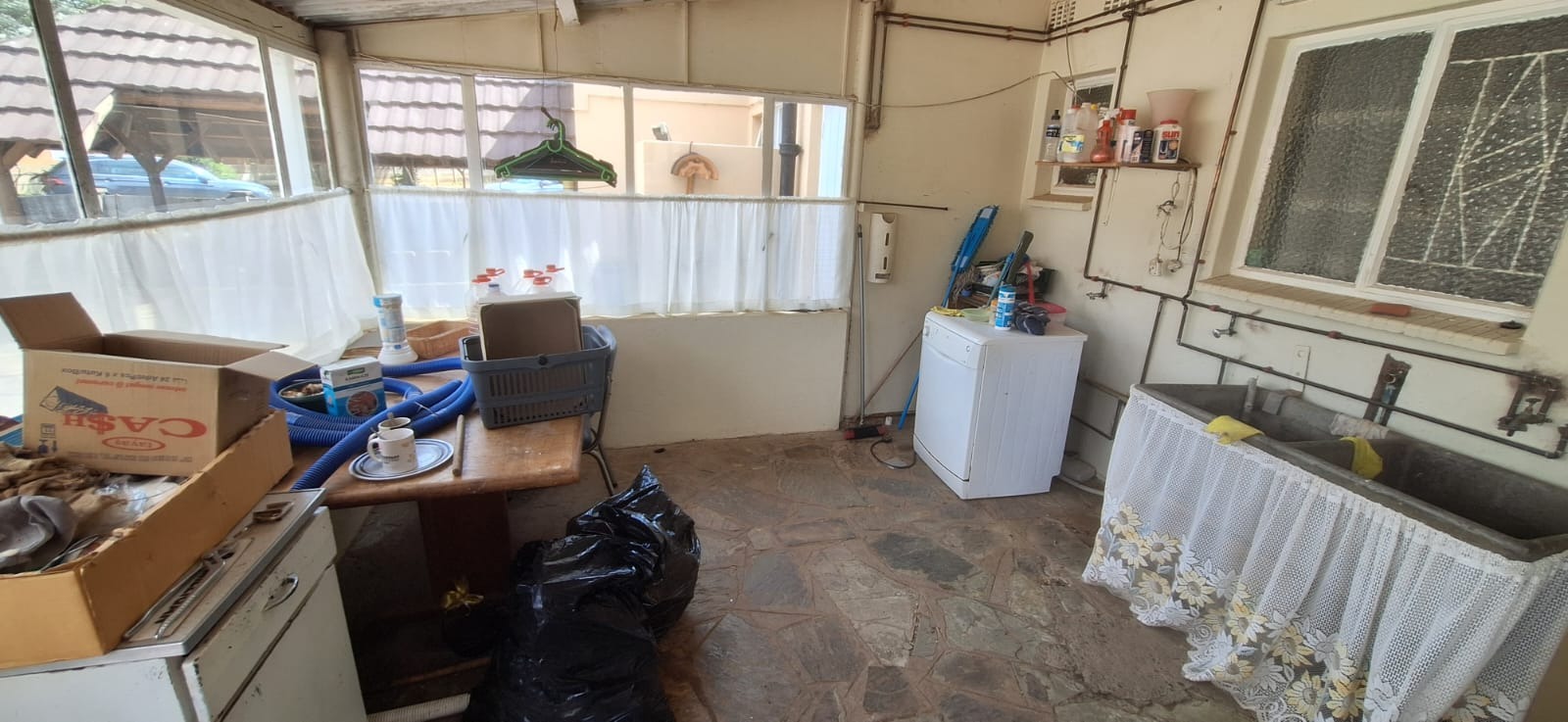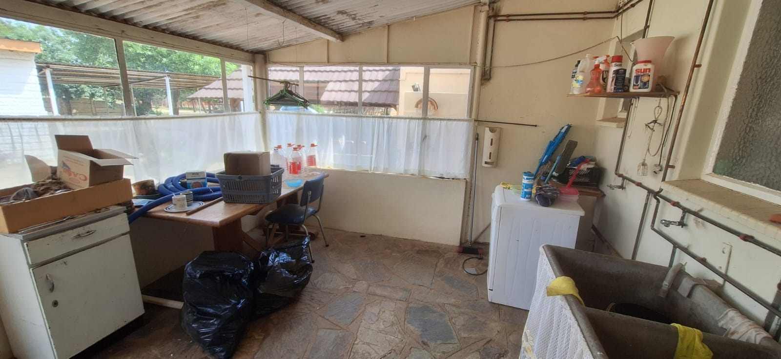 Located in suburban Roosheuwel, Klerksdorp, this property offers a spacious 1969 sqm erf. The 3-bedroom, 2-bathroom home includes a lounge, dining room, and kitchen, with one en-suite. Outdoors, find a large garden, paved driveway, covered carport, and a swimming pool. Security is provided by an alarm, burglar bars, security gate, and a fully walled perimeter.