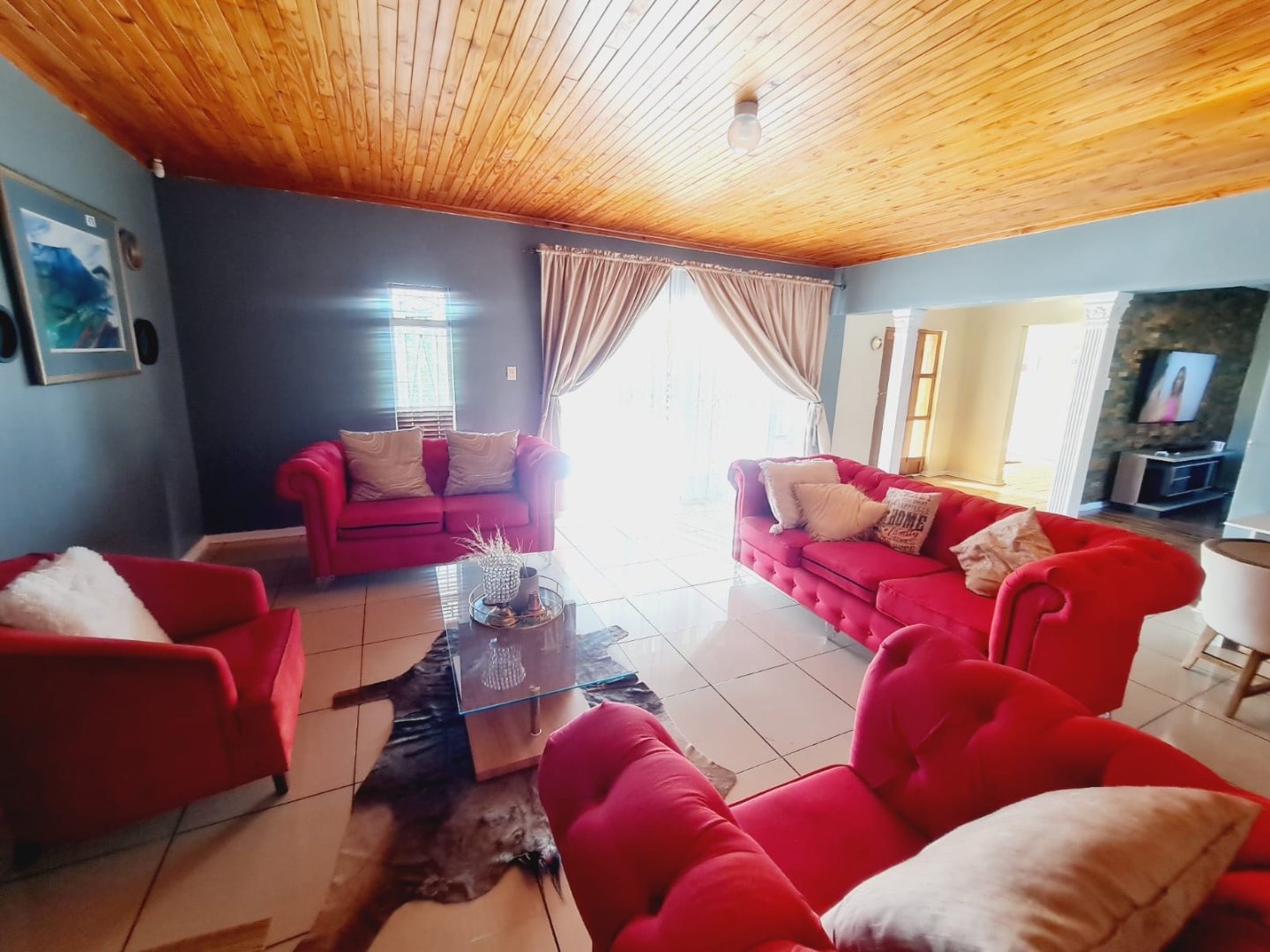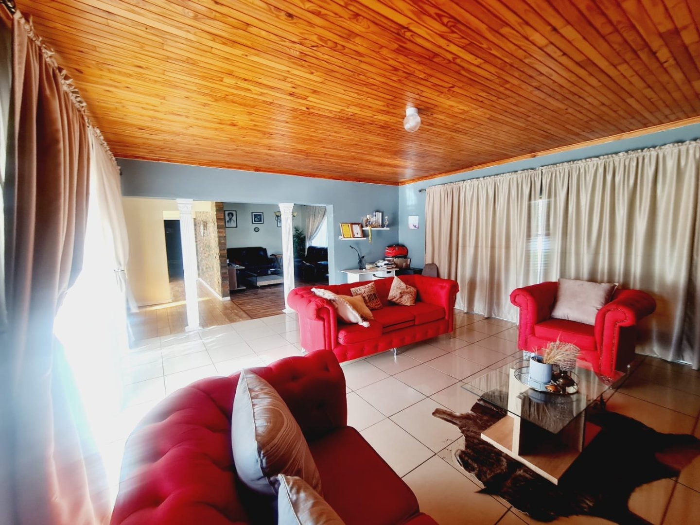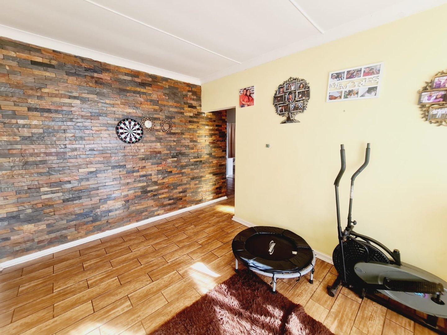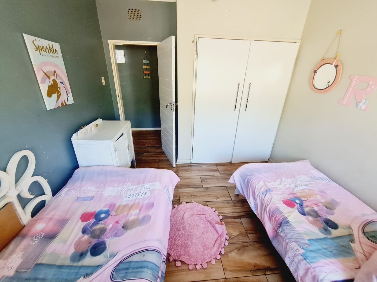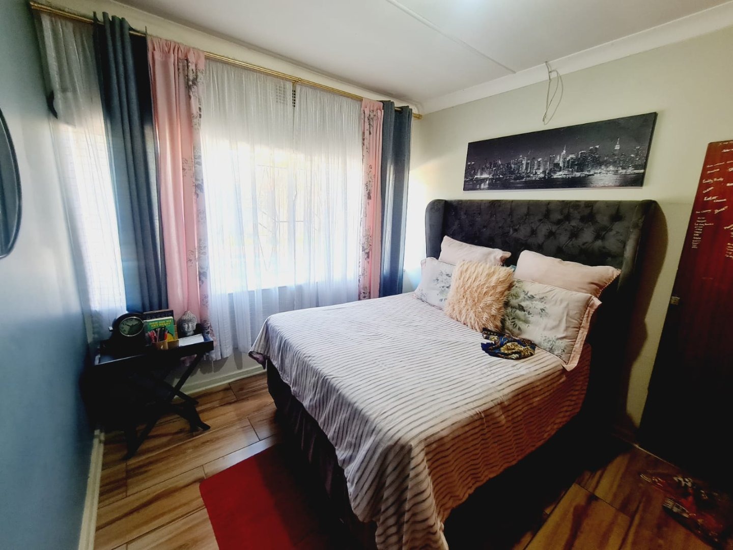Discover this inviting 3-bedroom, 2-bathroom residence located in the established suburb of Songloed, Klerksdorp, South Africa. The property immediately impresses with its strong kerb appeal, featuring a secure, high perimeter wall with decorative elements and an ornate metal entrance gate, ensuring privacy and peace of mind. A spacious paved driveway leads to a double garage, offering ample parking and convenience, complemented by a well-maintained front garden with mature trees and lush green lawns. Step inside to a thoughtfully designed interior that includes a comfortable lounge and a dedicated dining room, perfect for family living and entertaining. The modern kitchen is a highlight, boasting dark wood cabinetry, granite countertops, and a stylish mosaic tile backsplash. It comes equipped with integrated appliances, including an electric hob, oven, and extractor hood, alongside a functional central island/breakfast bar, making it both practical and aesthetically pleasing. The home offers three well-proportioned bedrooms, providing comfortable accommodation. The two bathrooms include a main bathroom with extensive tiling and a classic clawfoot bathtub, while one bedroom benefits from an open-plan en-suite bathroom featuring a freestanding bathtub. While some areas present opportunities for cosmetic updates, the core structure offers a solid foundation. Outside, the property extends its appeal with a private swimming pool set within a paved surround, ideal for relaxation and recreation. The large backyard, bordered by mature trees, offers significant potential for landscaping and outdoor development, allowing you to create your dream outdoor oasis. Songloed is a residential area known for its community feel and convenient access to local amenities in Klerksdorp. Key Features: * 3 Bedrooms, 2 Bathrooms * Modern Kitchen with Granite Countertops * Spacious Lounge and Dining Room * Double Garage (Enclosed & Carport) * Private Swimming Pool * Large, Established Garden * Secure Perimeter Wall and Gate * Paved Driveway with Ample Parking * Potential for Outdoor Customisation