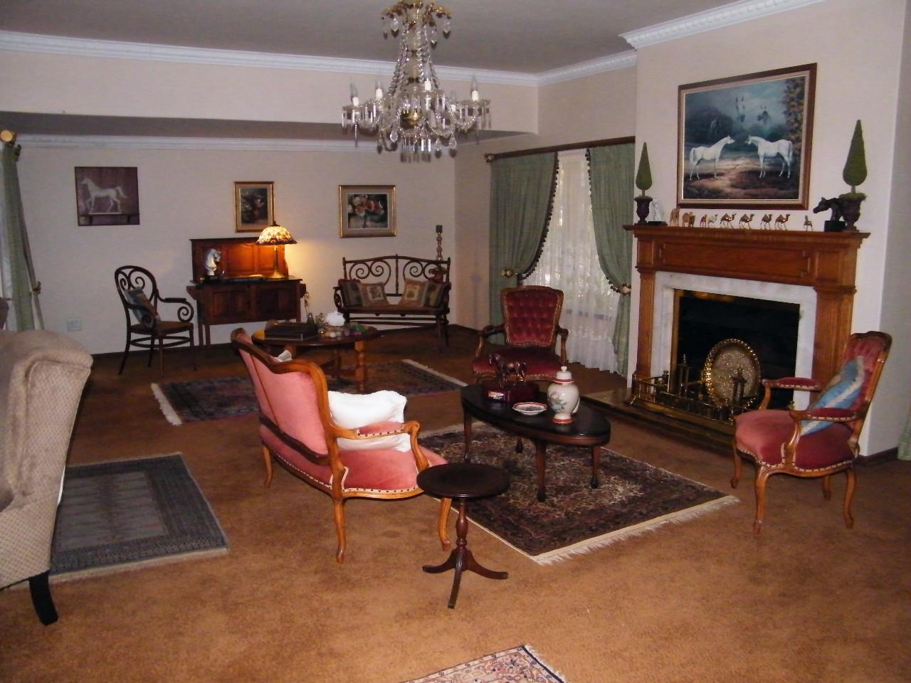A magnificent well built and well maintained house consisting of a large entrance hall leading on to a huge formal lounge and second informal lounge, a separate formal dining room. A huge kitchen, very well fitted with solid white oak cupboards a separate scullery area and a special room for fridges.Two large family rooms for entertaining and television. Study room, three bedrooms each with own bathroom, all fitted with white oak built-in cupboards. A special storage room for gun safes and other valuables. A very large swimming pool and outdoor braai facility. This is a very large property with a lot of potential for new development. A large portion of the grounds have been divided into separate sell-able stands.
