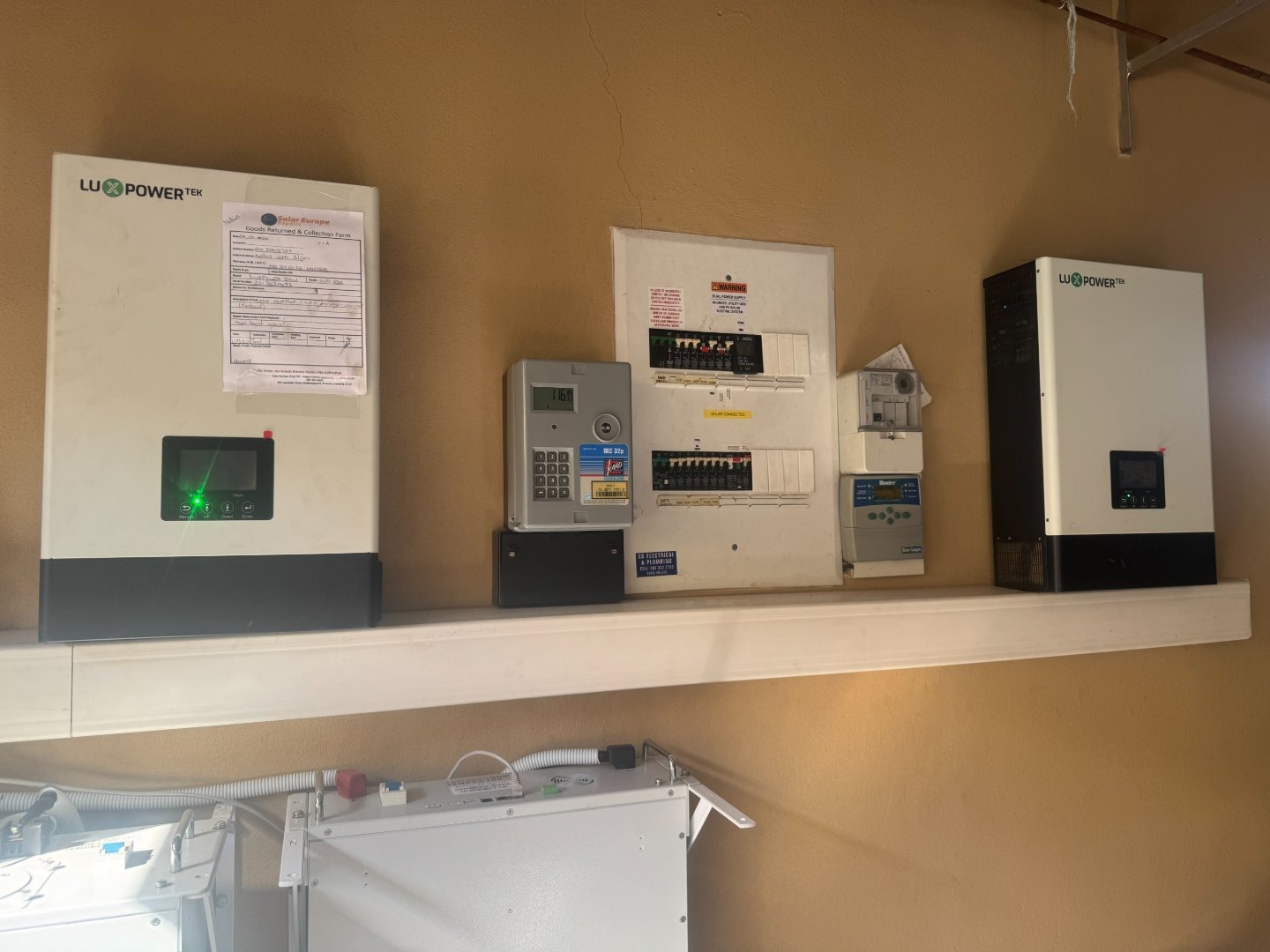 - Inverter system, 2 x 5 KvA, and 15 solar panels