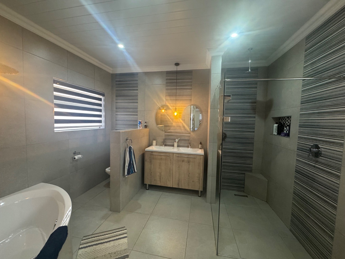 The property boasts generous bedrooms with ample built-in cupboards, while the bathrooms showcase elegant fixtures and finishes. Attention to detail is evident throughout, from the clean lines and high ceilings to the tasteful lighting and flooring selections.