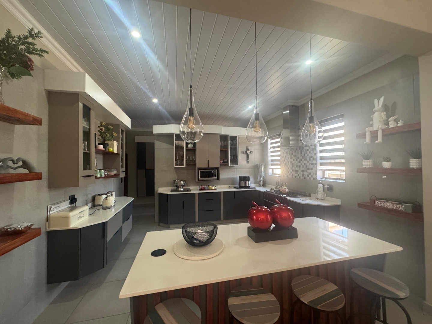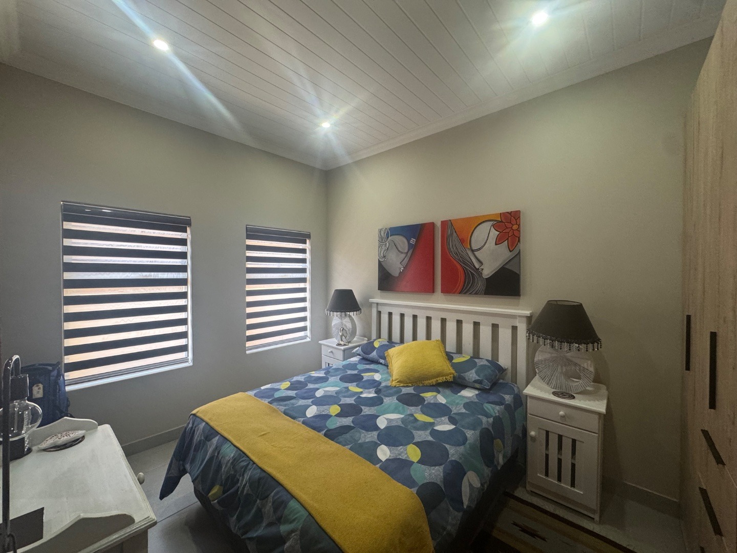 The property boasts generous bedrooms with ample built-in cupboards, while the bathrooms showcase elegant fixtures and finishes. Attention to detail is evident throughout, from the clean lines and high ceilings to the tasteful lighting and flooring selections.