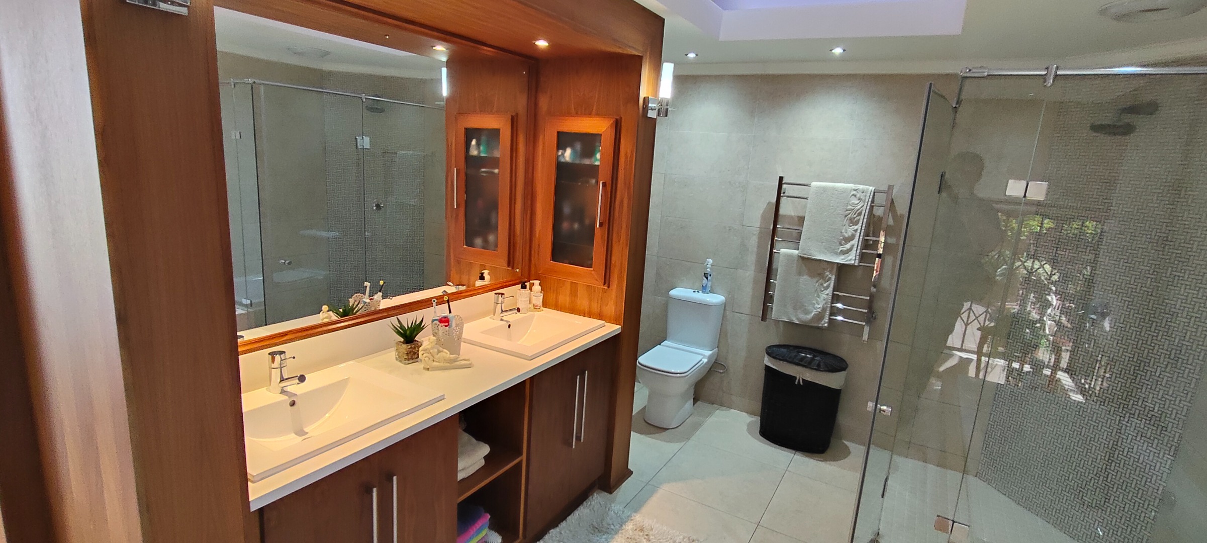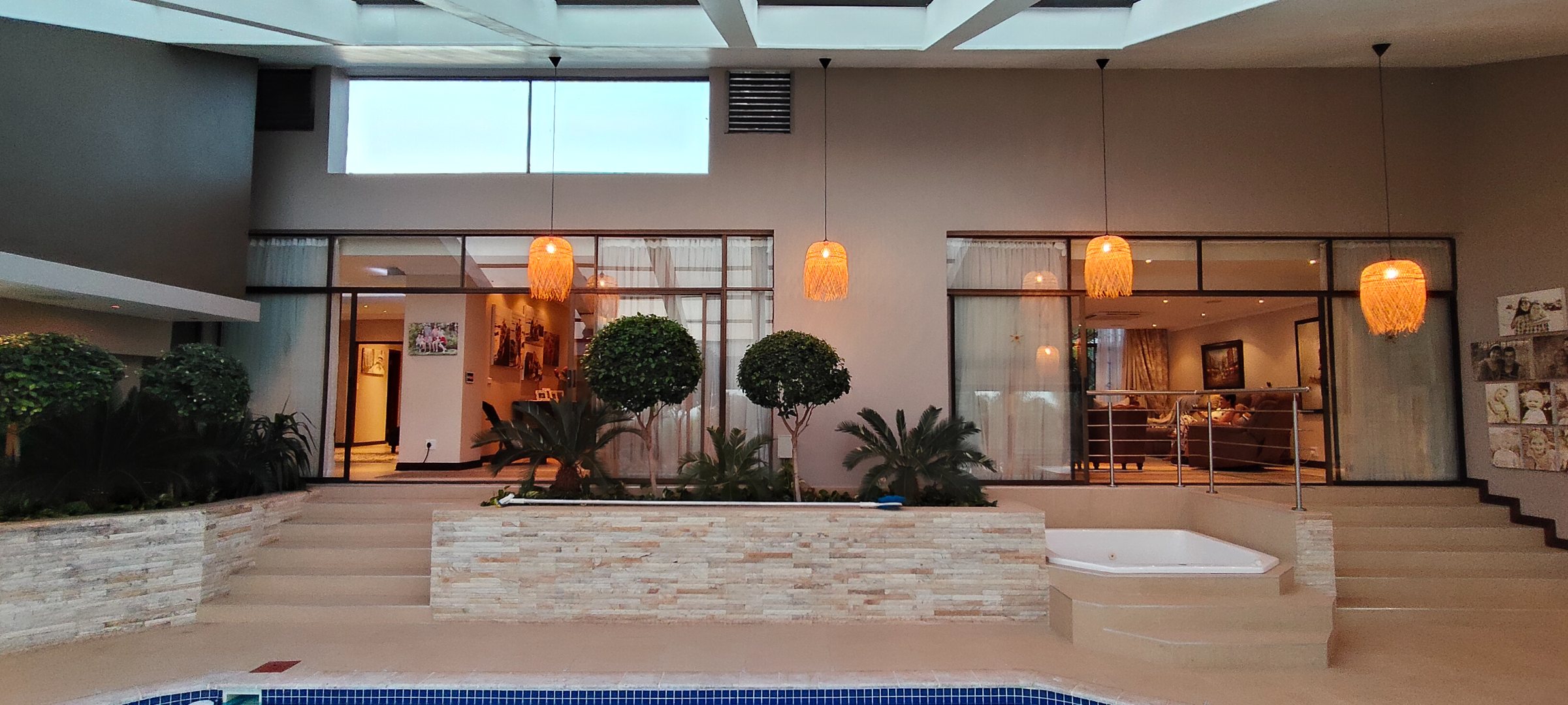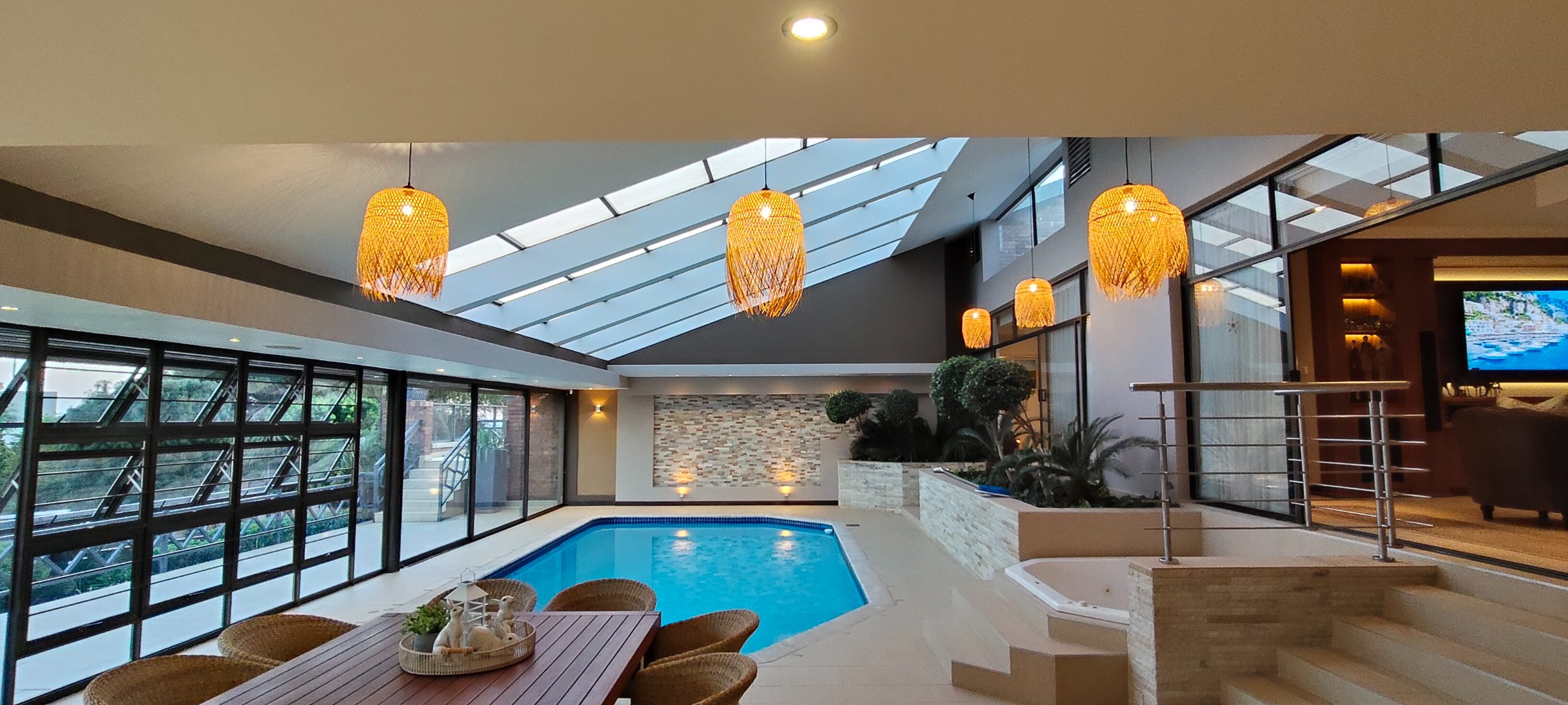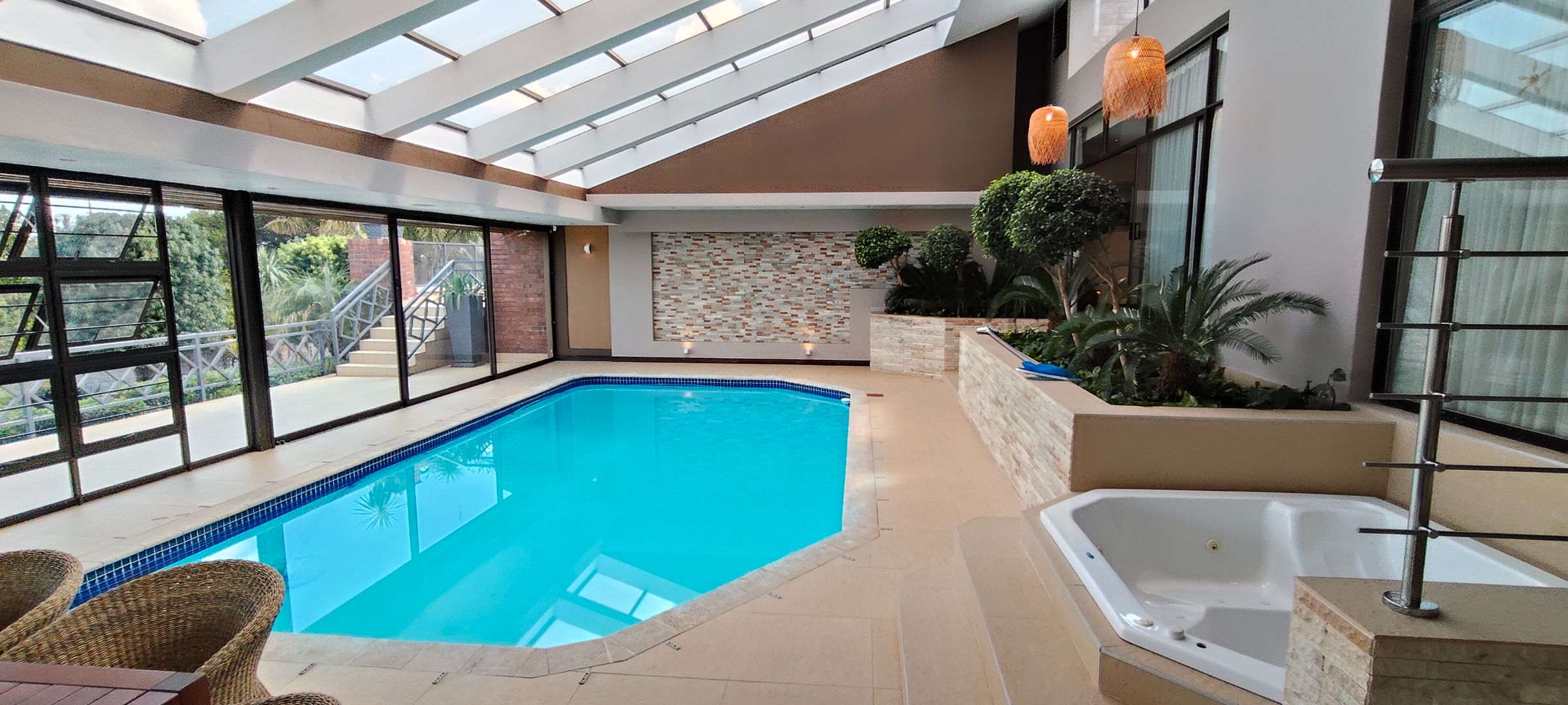 The home features generous living spaces complemented by state-of-the-art amenities. An indoor swimming pool and private gym create the perfect balance of relaxation and wellness, while a dedicated braai and entertainment area make hosting guests effortless.