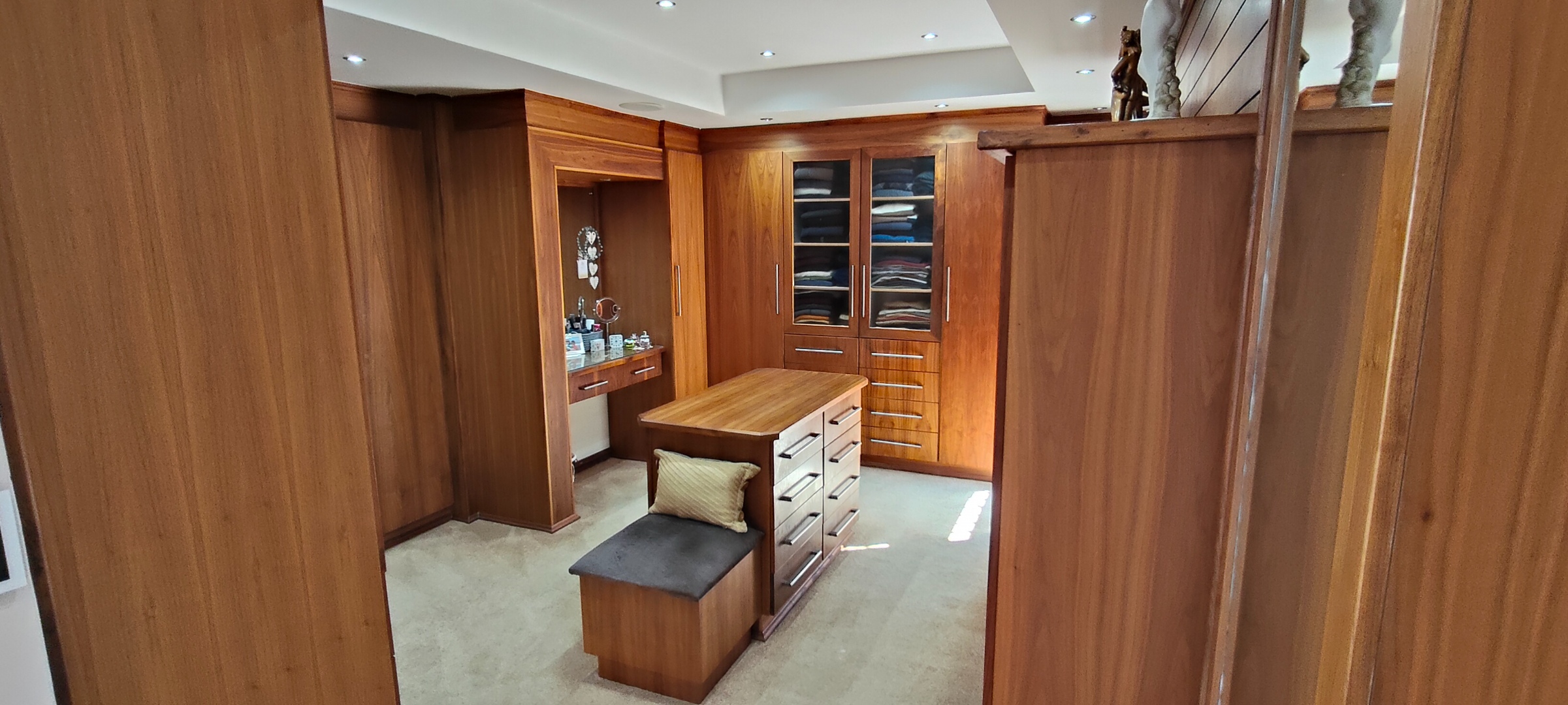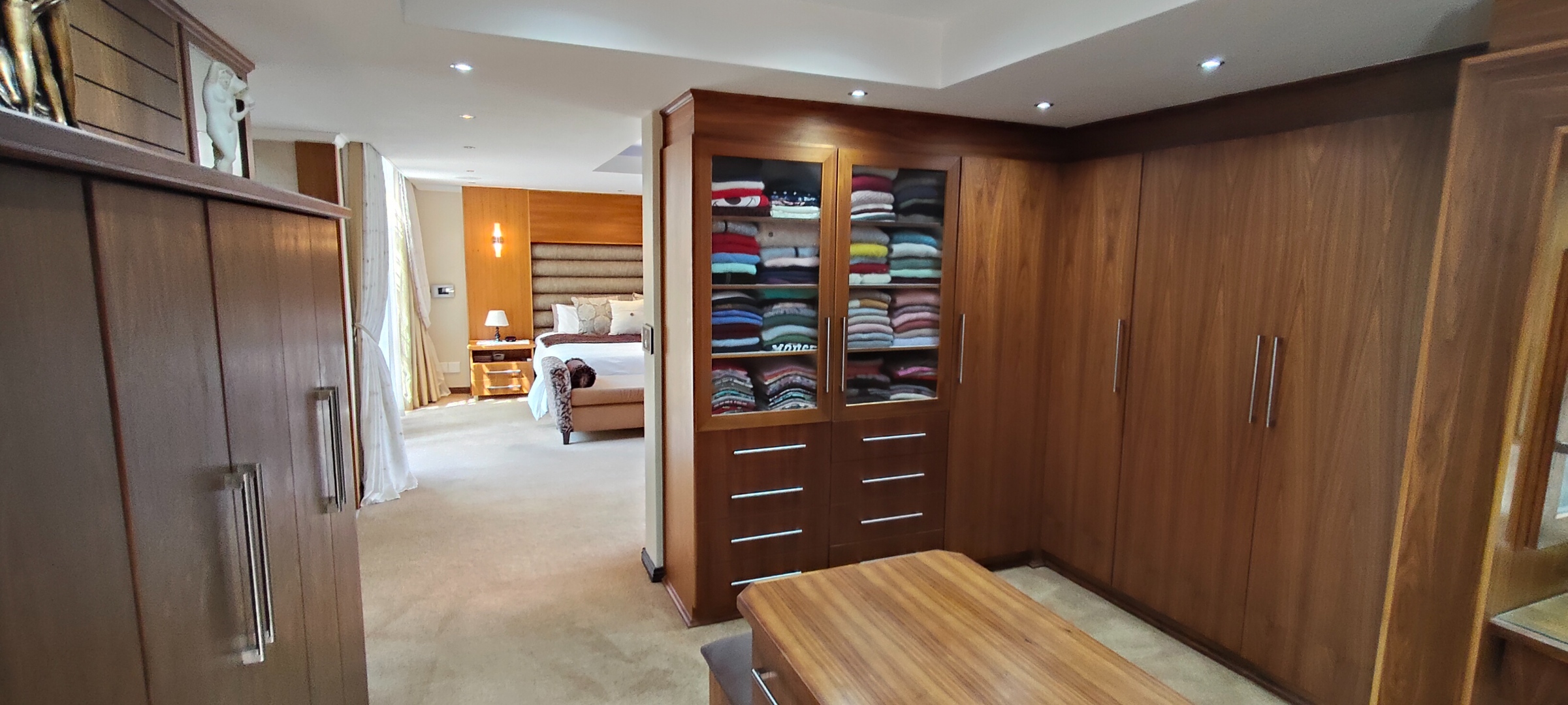 Storage is never an issue with extensive built-in cupboards crafted from exquisite American walnut wood, bringing warmth and timeless elegance to the interiors.
