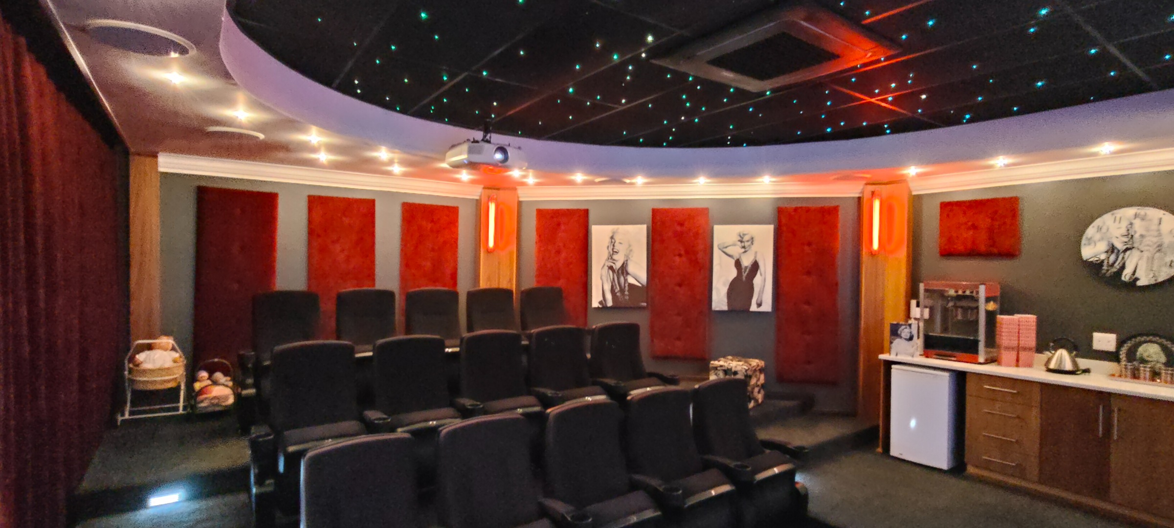 Enjoy complete cinema with screen, projector and even a pop corn mashine.