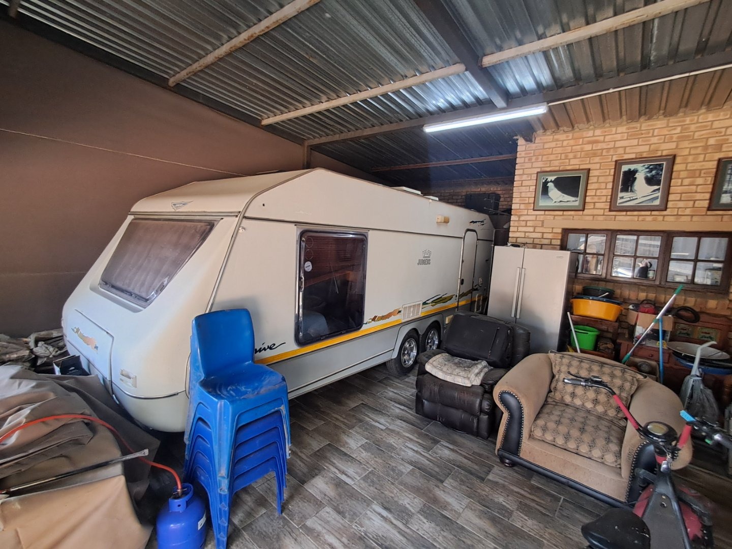 The house features 2 bedrooms and 1 bathroom, along with an open-plan kitchen, lounge, and dining room that creates an easy flow throughout the home. Outside, you’ll find great extras including a double garage, storage space, and parking space for a caravan.