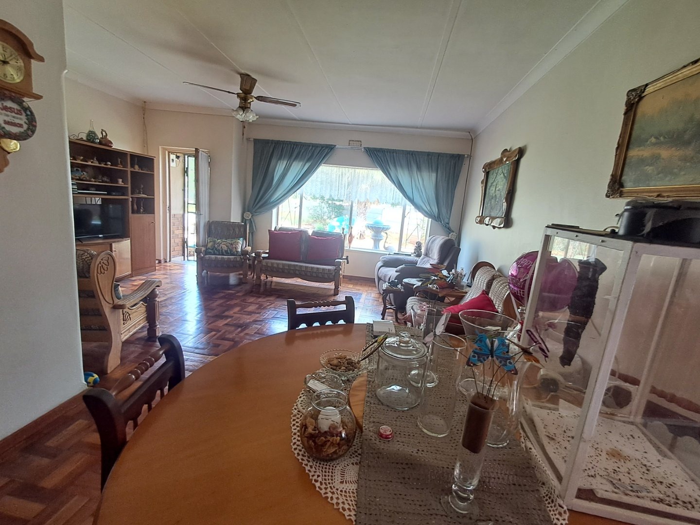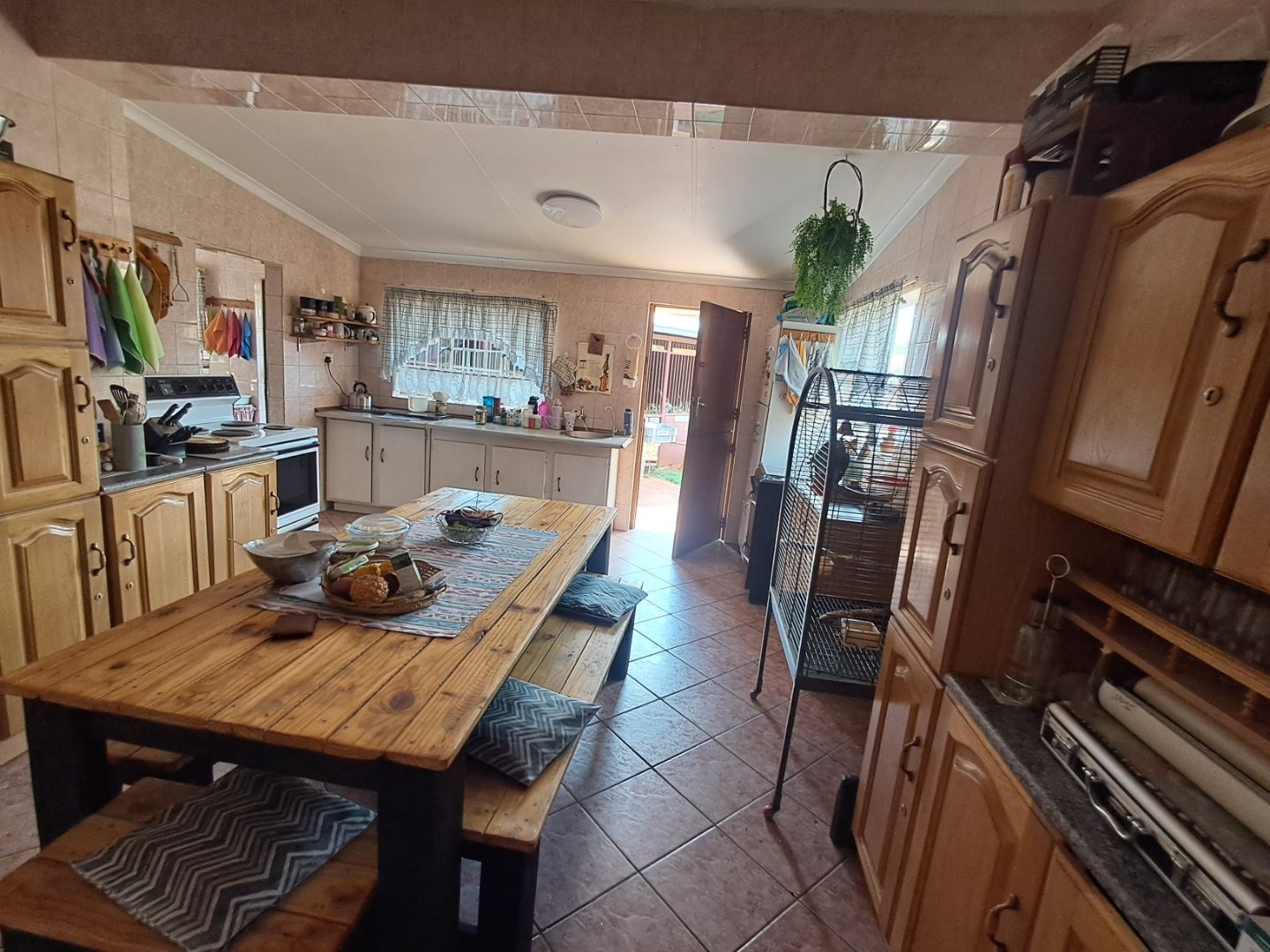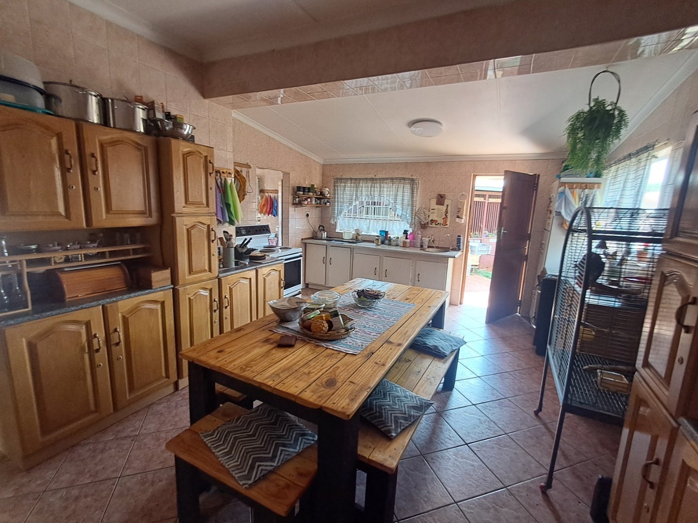 The home has an open-plan living and dining room, creating a warm and inviting atmosphere. The kitchen is fitted with cupboards and leads to a separate scullery. Two of the bedrooms each feature their own private bathrooms.
