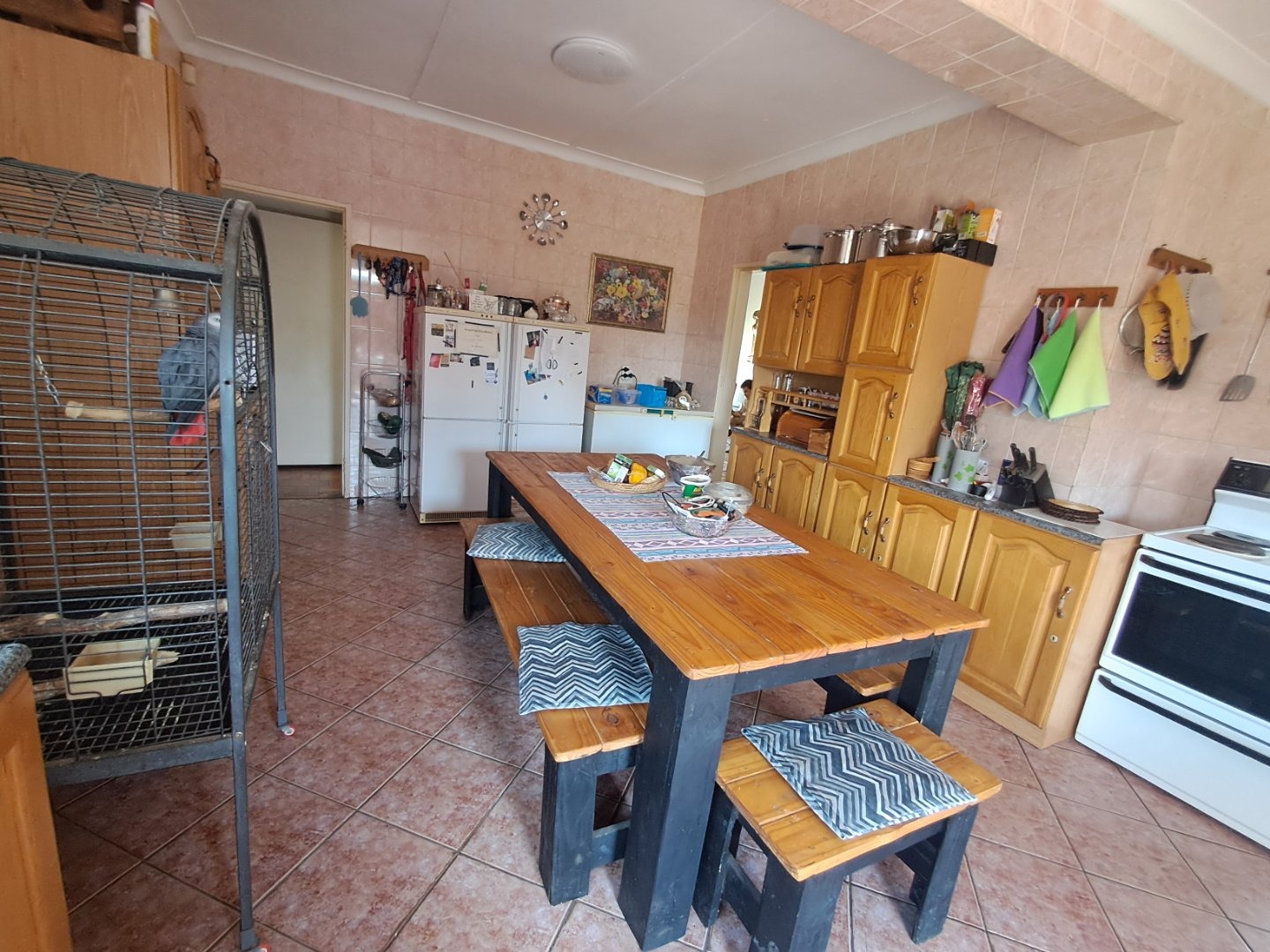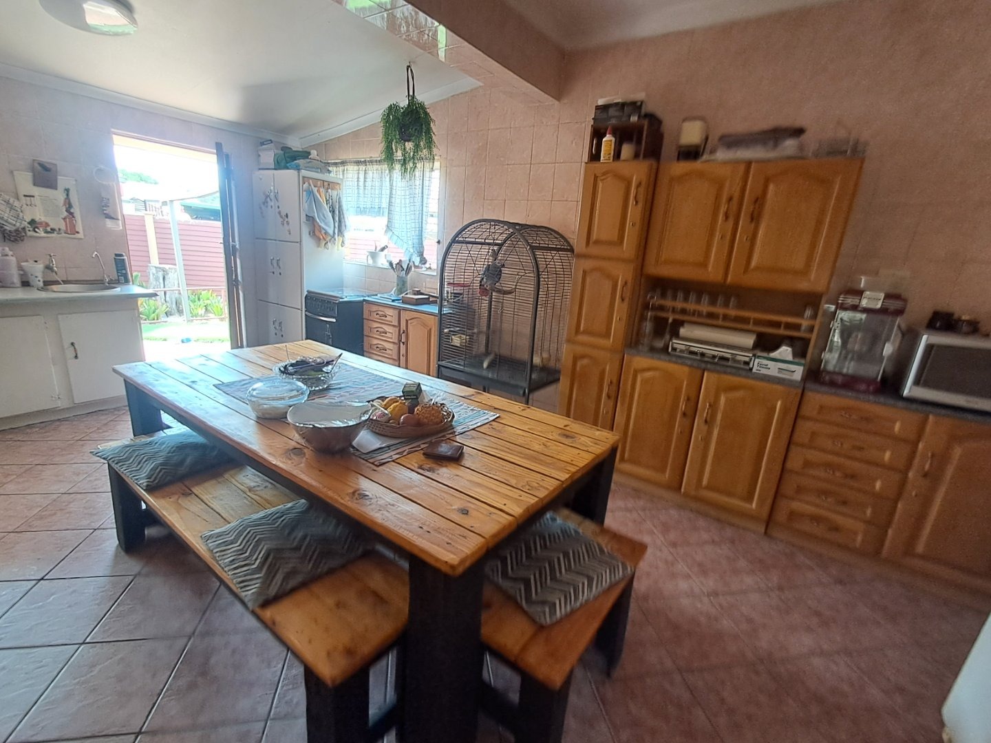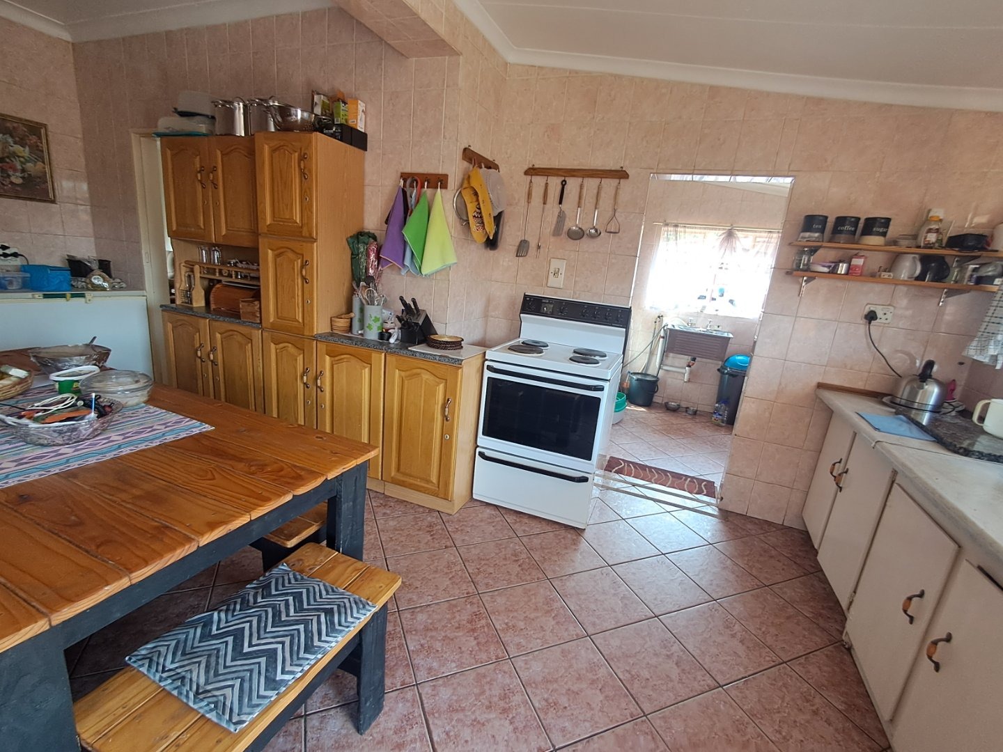 The home has an open-plan living and dining room, creating a warm and inviting atmosphere. The kitchen is fitted with cupboards and leads to a separate scullery. Two of the bedrooms each feature their own private bathrooms.