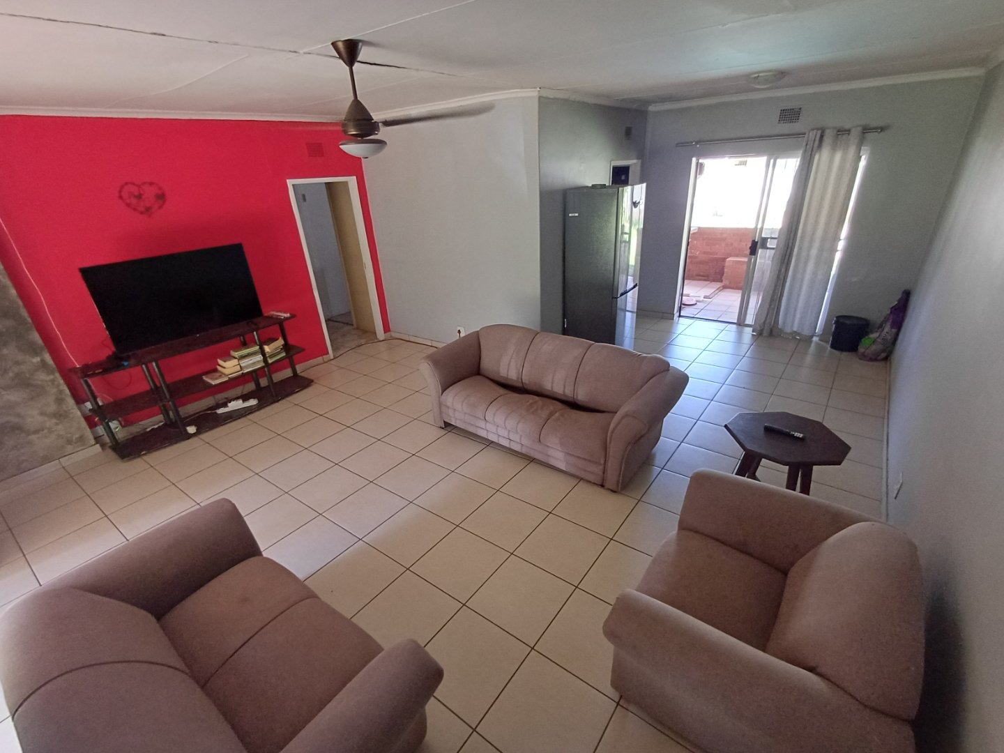 - Open-plan tiled lounge and dining area with sliding doors to veranda & Lapa