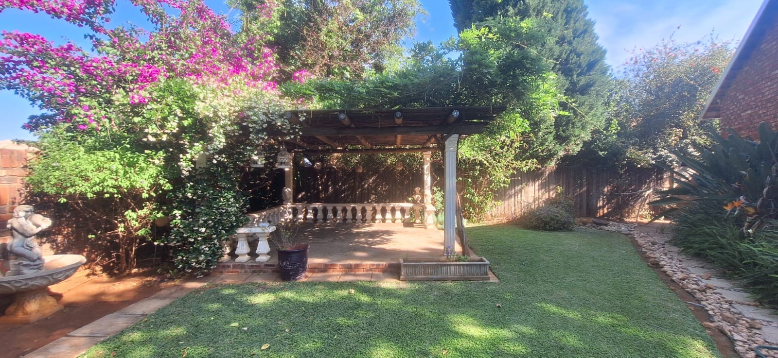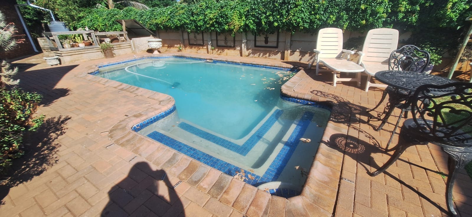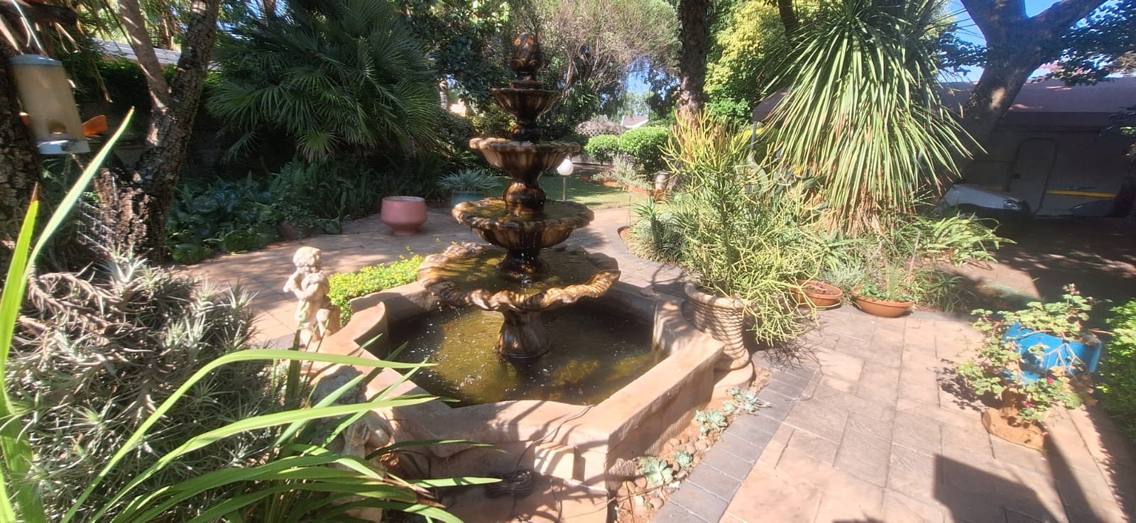 The exterior is just as impressive, boasting a large, manicured yard with a stunning water feature in front, a sprinkler system and lights both set on timers for easy maintenance, and a lovely pergola with shade for relaxed afternoon entertaining. The lapa area includes power for lighting and sits beside a sparkling swimming pool, creating a wonderful entertainment space for family and friends.