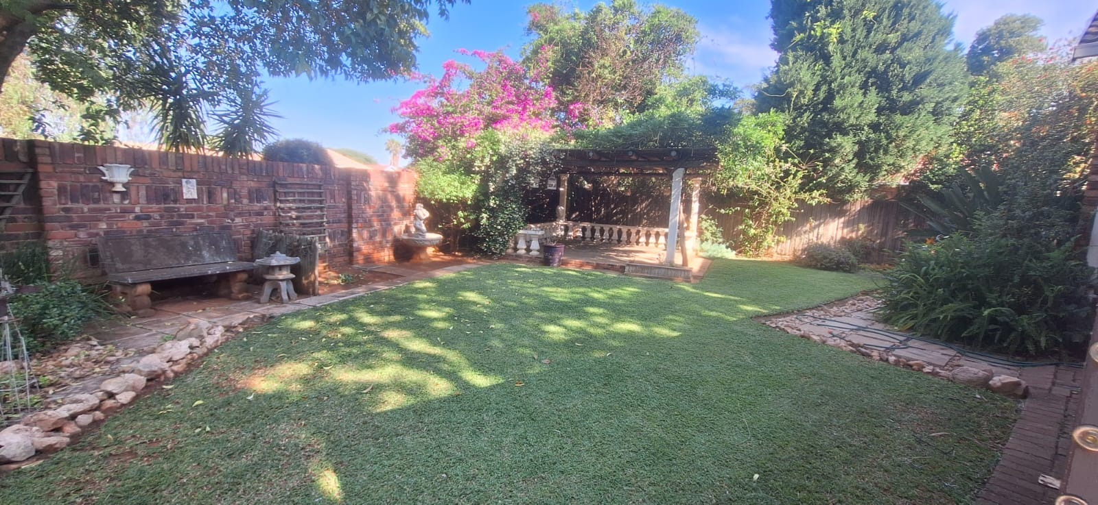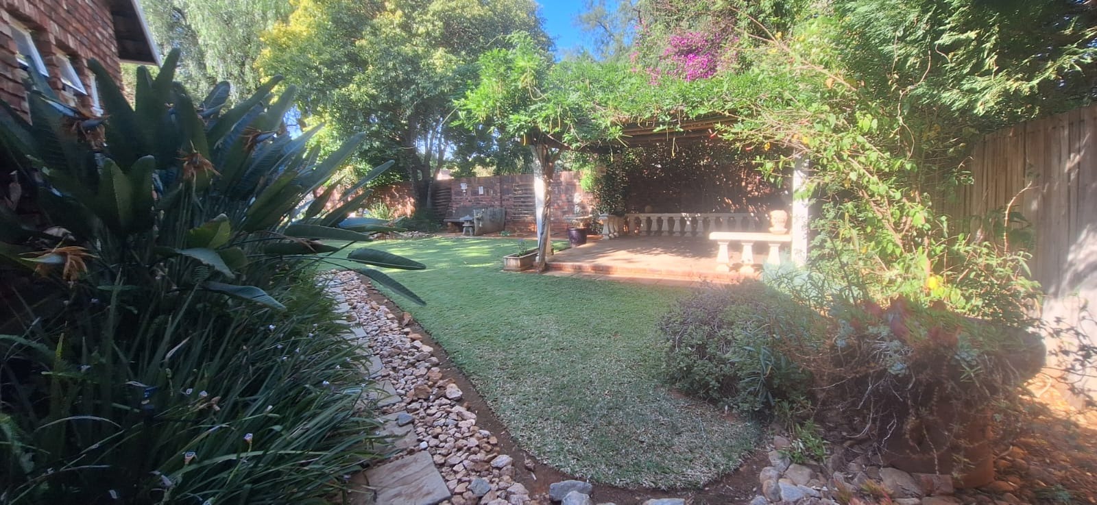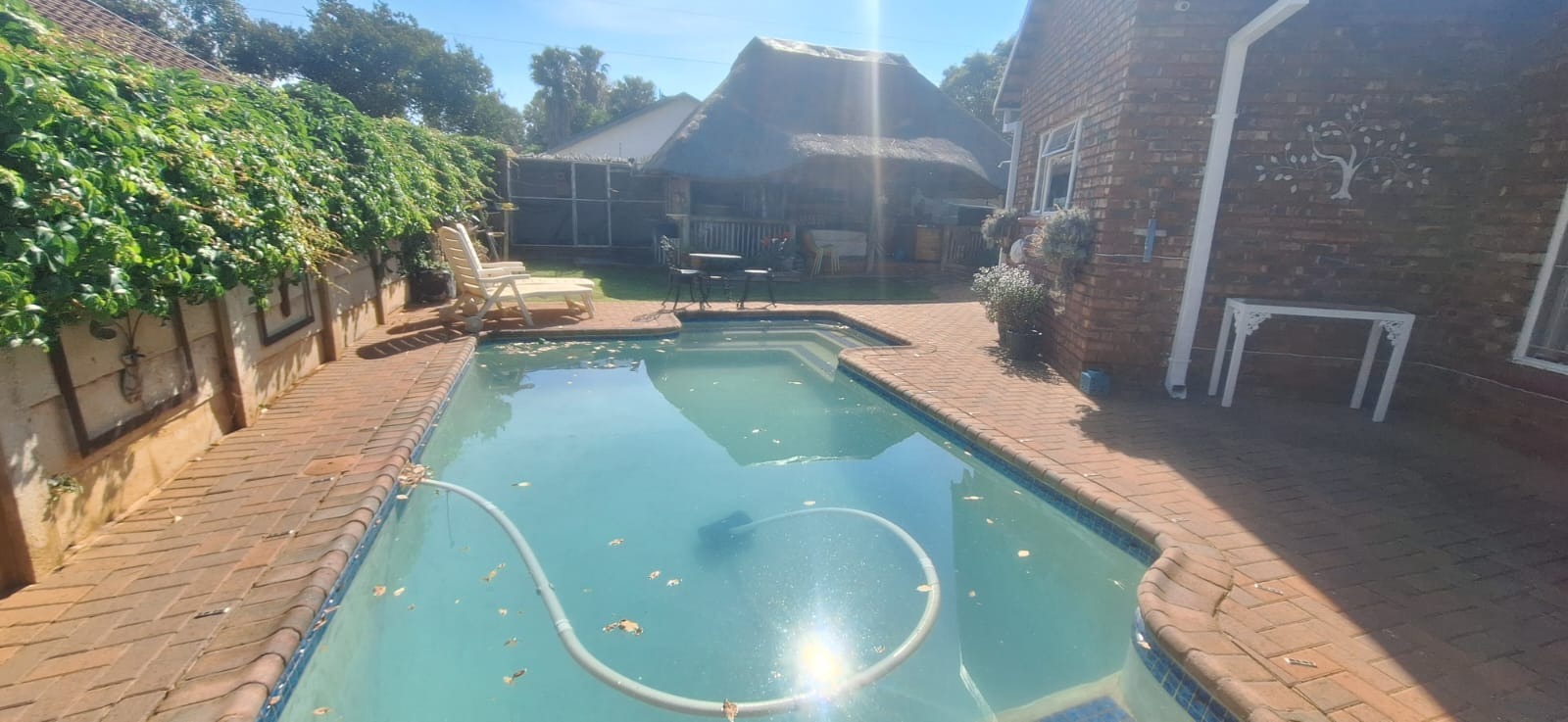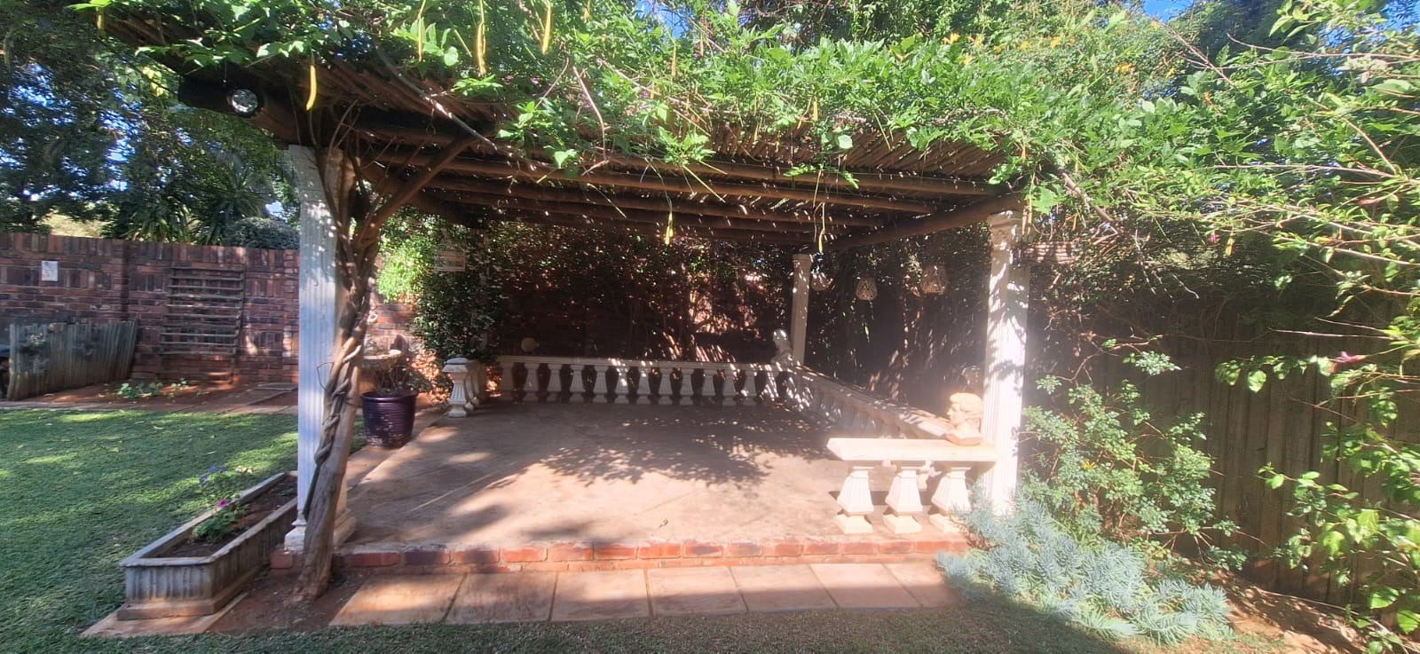 The exterior is just as impressive, boasting a large, manicured yard with a stunning water feature in front, a sprinkler system and lights both set on timers for easy maintenance, and a lovely pergola with shade for relaxed afternoon entertaining. The lapa area includes power for lighting and sits beside a sparkling swimming pool, creating a wonderful entertainment space for family and friends.