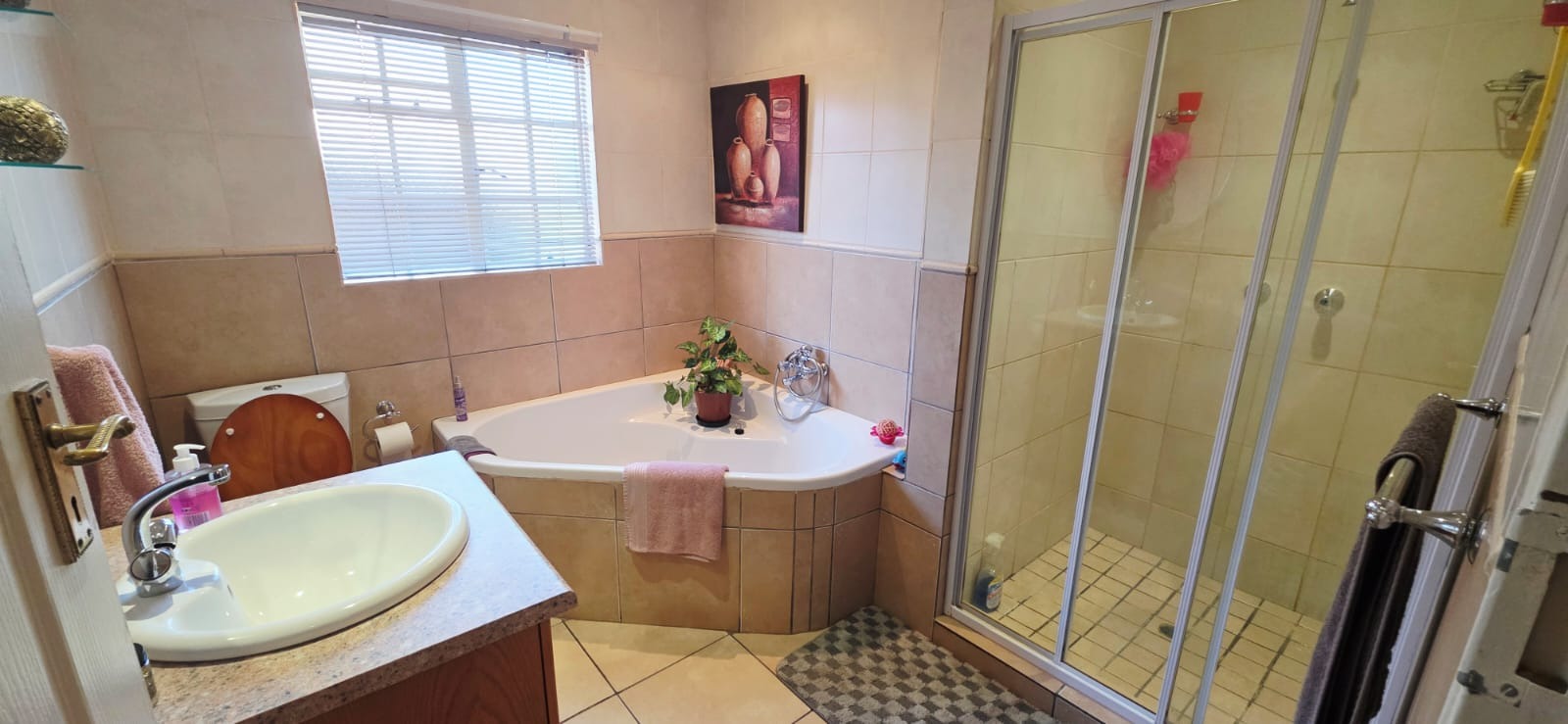 Security is well taken care of with an alarm system, electric fencing, burglar bars, security gates, and 24-hour security, giving you peace of mind. Plus, the home is fibre-ready, ensuring fast internet connectivity. This Doringkruin gem also includes domestic rooms, adding to its functionality.
