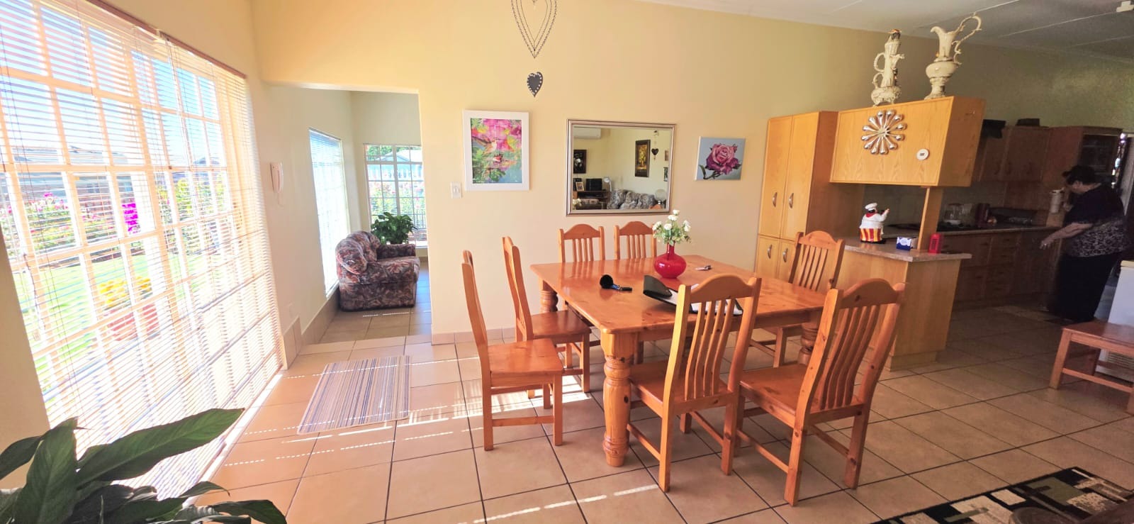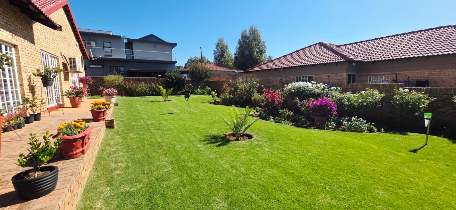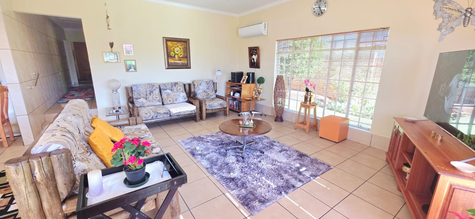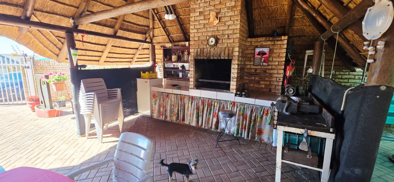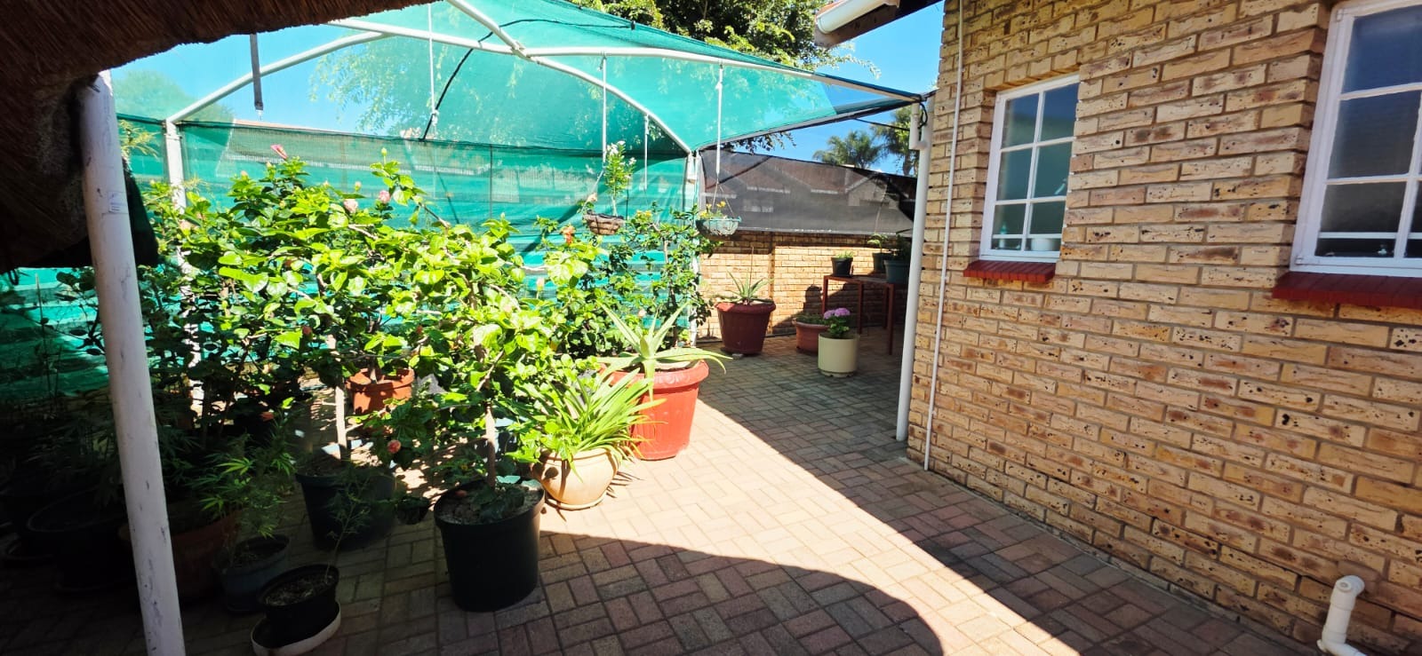 Outside, you'll find a generous 1699 sqm erf with a beautiful garden, perfect for pets and outdoor activities. Imagine relaxing under the lapa, enjoying a braai with friends and family thanks to the built-in braai. The property also boasts practical features like a borehole for water resilience and solar panels, helping you save on utilities. Parking is a breeze with two garages and two additional parking spaces.