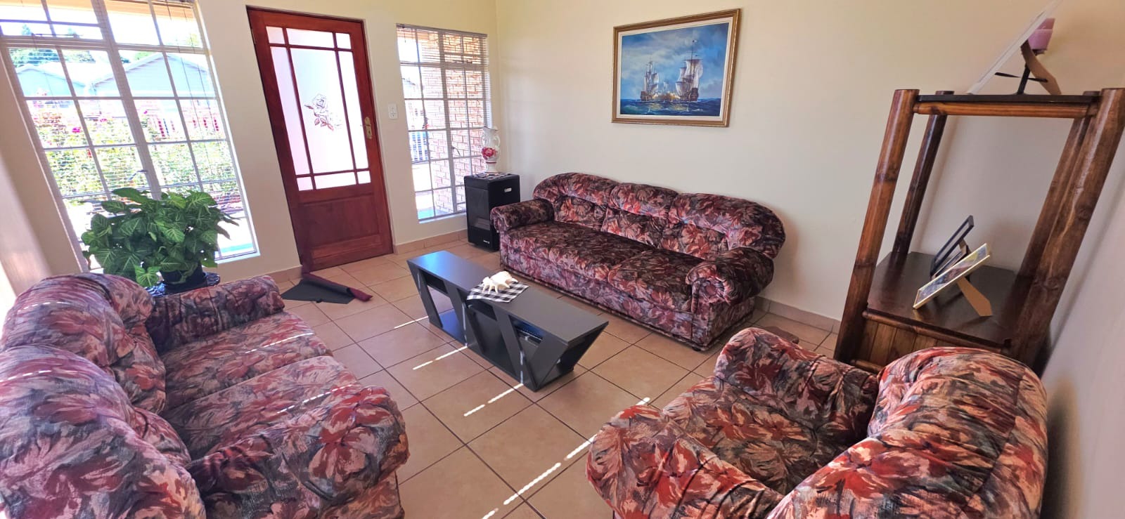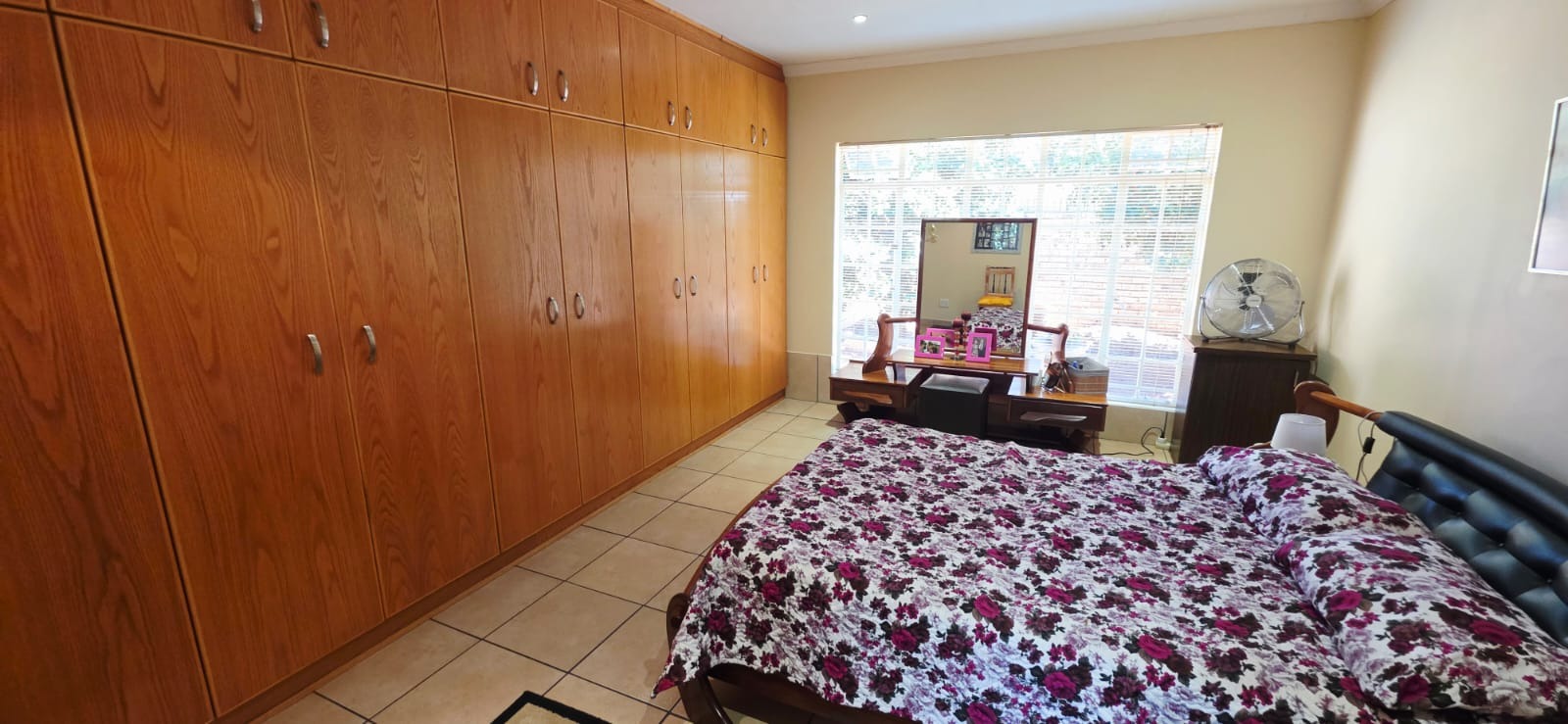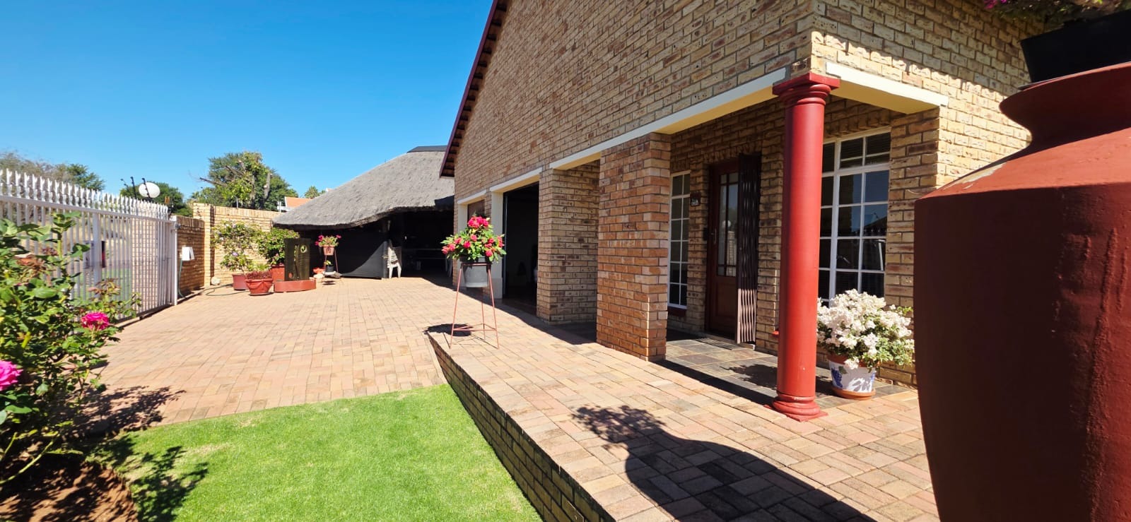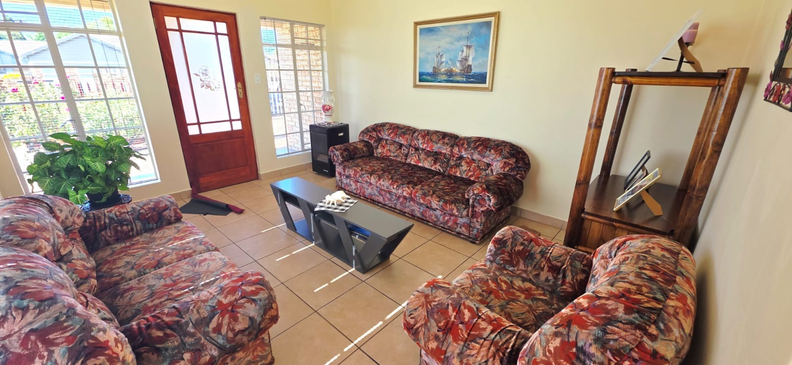 Outside, you'll find a generous 1699 sqm erf with a beautiful garden, perfect for pets and outdoor activities. Imagine relaxing under the lapa, enjoying a braai with friends and family thanks to the built-in braai. The property also boasts practical features like a borehole for water resilience and solar panels, helping you save on utilities. Parking is a breeze with two garages and two additional parking spaces.
