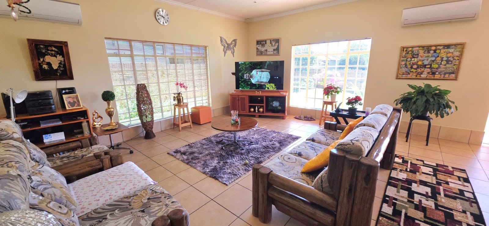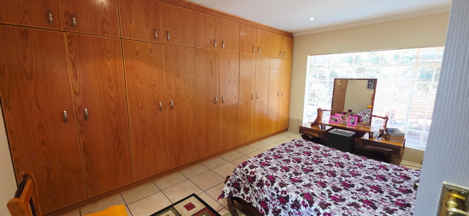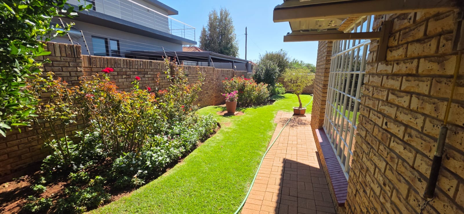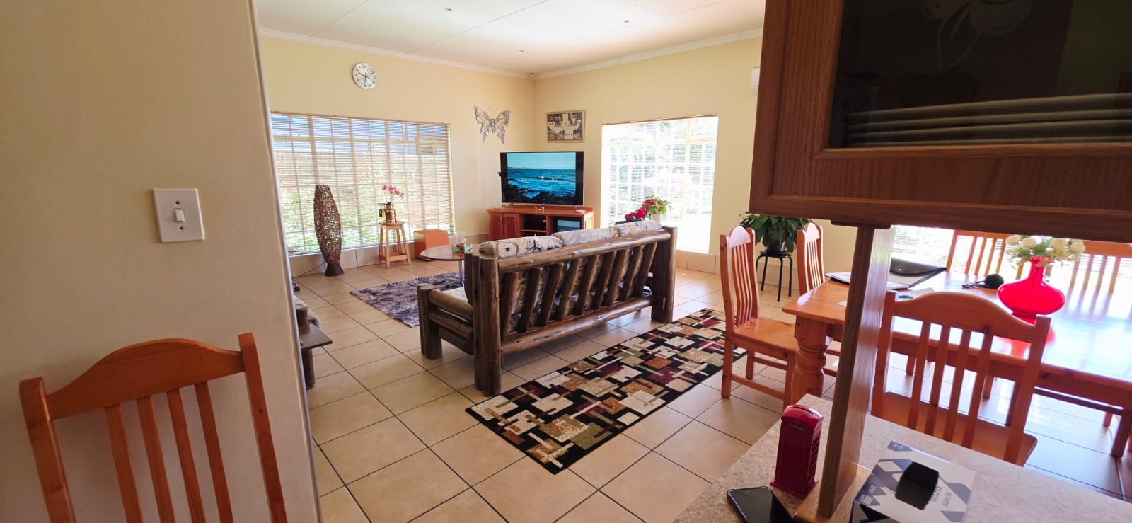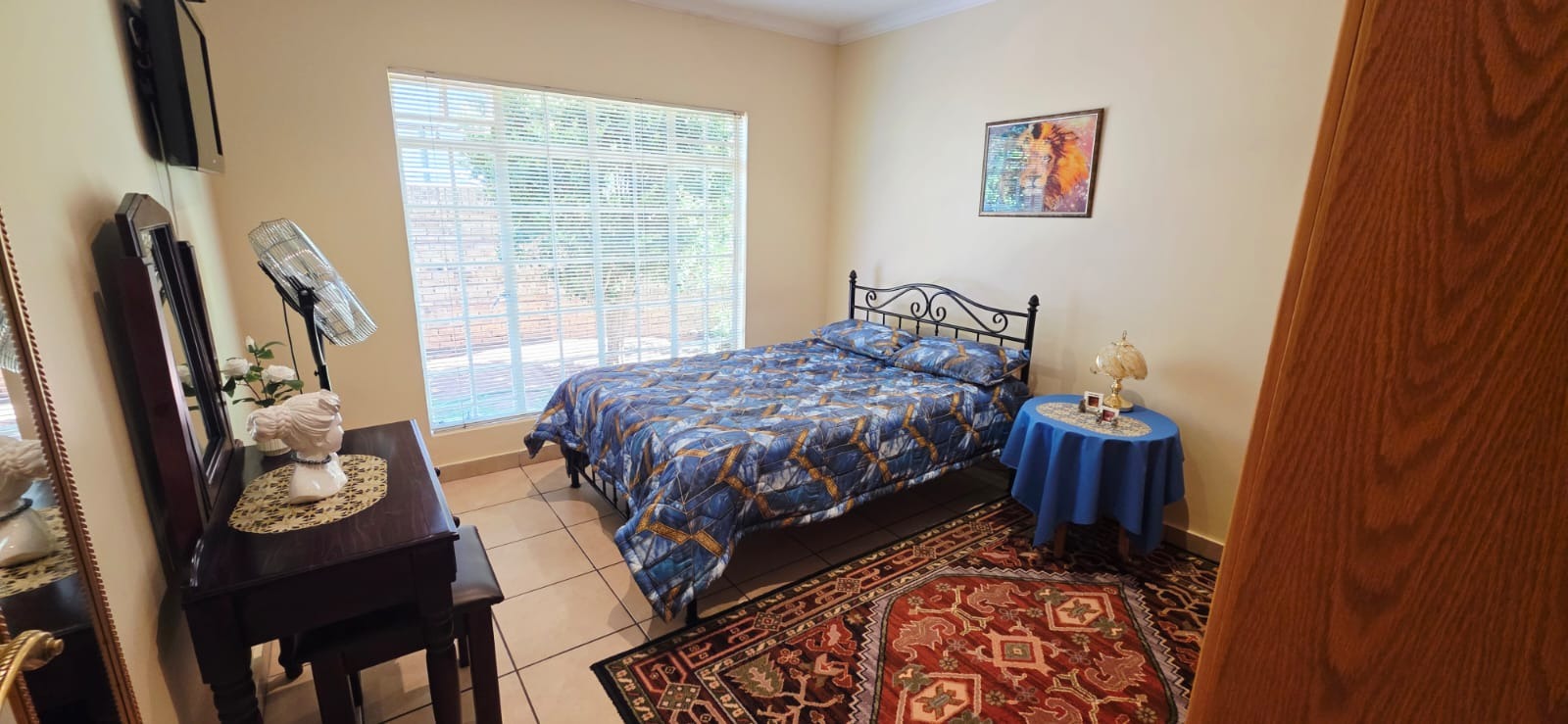 Outside, you'll find a generous 1699 sqm erf with a beautiful garden, perfect for pets and outdoor activities. Imagine relaxing under the lapa, enjoying a braai with friends and family thanks to the built-in braai. The property also boasts practical features like a borehole for water resilience and solar panels, helping you save on utilities. Parking is a breeze with two garages and two additional parking spaces.