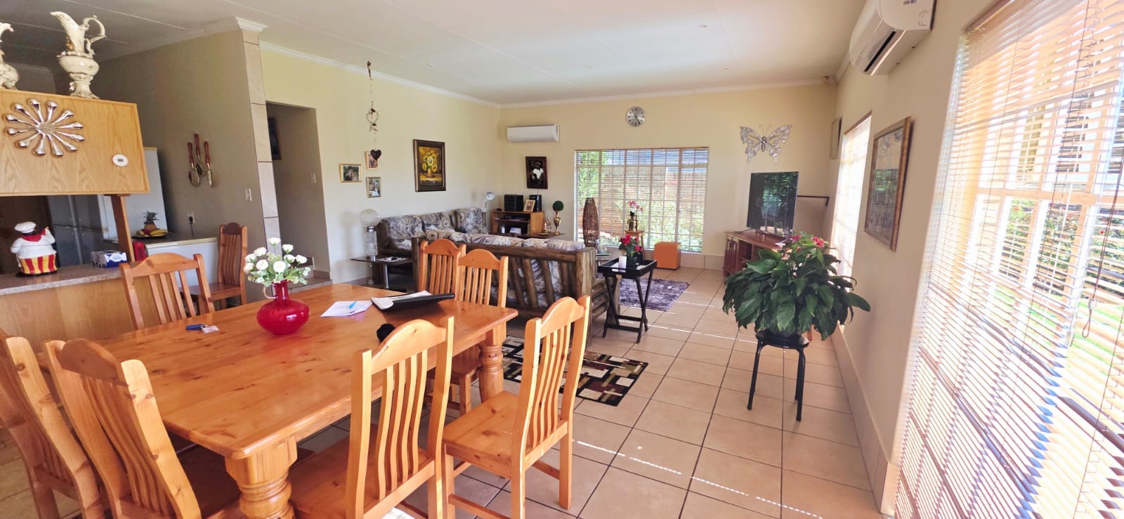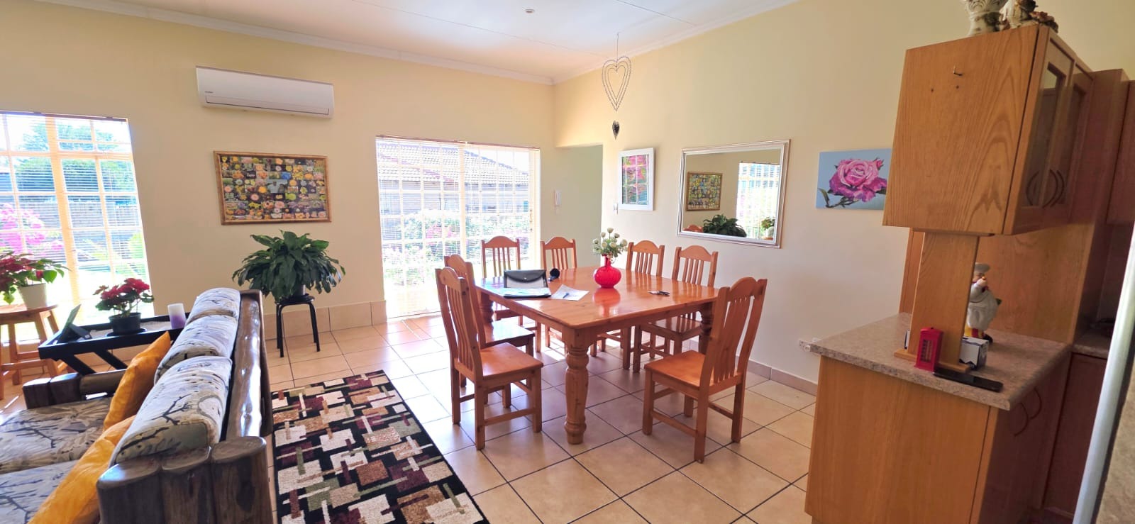 Come and discover this lovely 3-bedroom home nestled in the welcoming suburban area of Doringkruin, Klerksdorp. As you step inside through the entrance hall, you'll immediately appreciate the open-plan layout that connects the lounge, dining room, and kitchen, creating a spacious and inviting atmosphere perfect for family life and entertaining. The home is equipped with air conditioning for those warm South African days, ensuring comfort throughout.