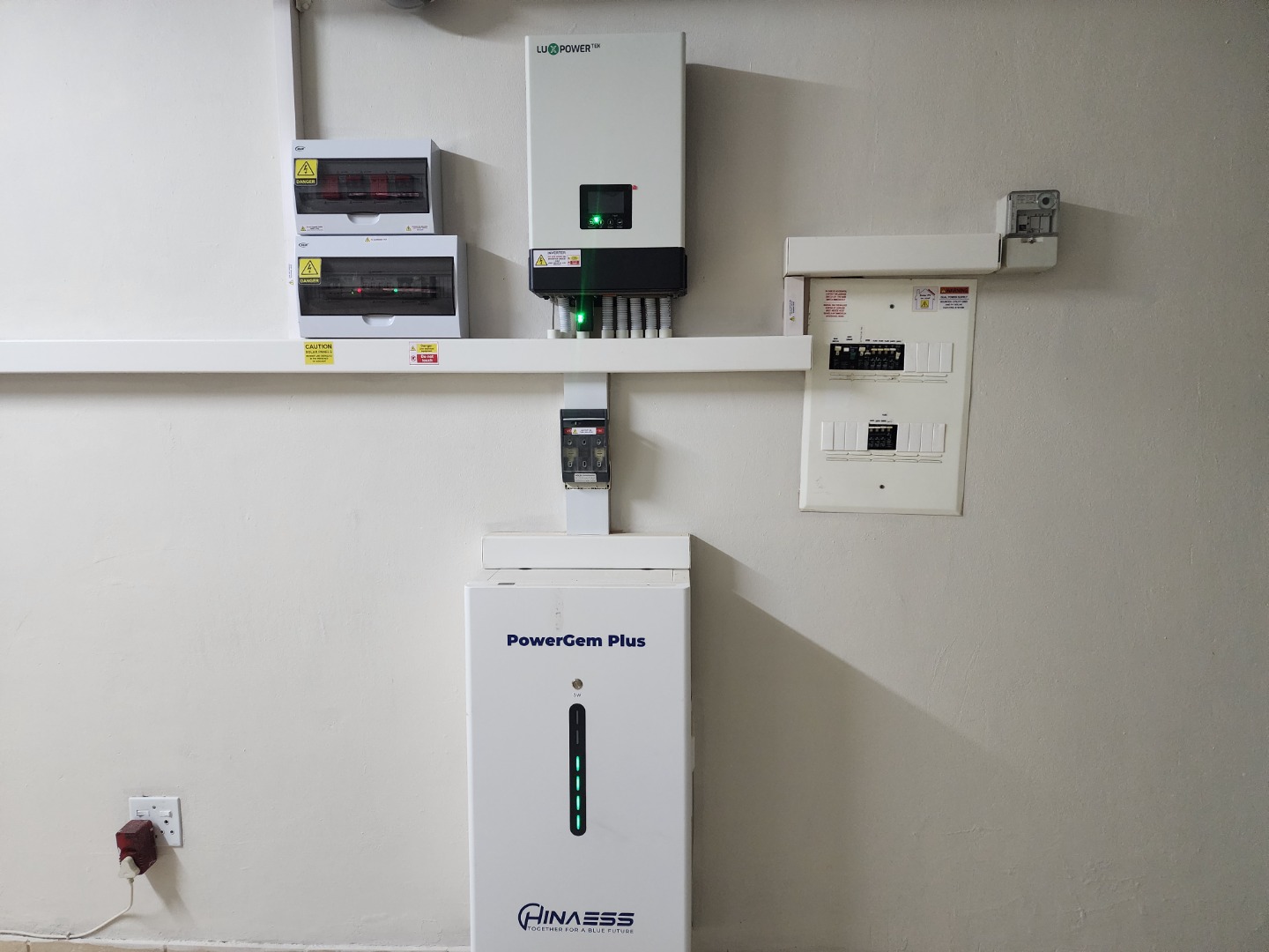 > Off grid solar system with 6kva inverter, 14kva lithium battery and 8 solar panels.