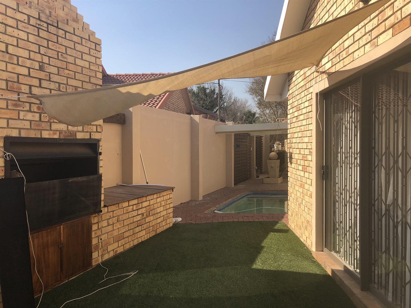 Townhouse Three: 3 Bedrooms, 2 Bathrooms, Double Electric Garages, Double Carport, Open-plan Kitchen and Lounge. Built-in braai and swimming pool.