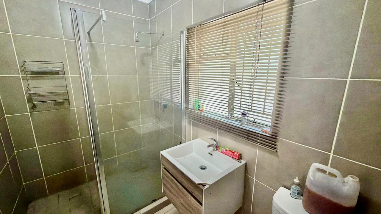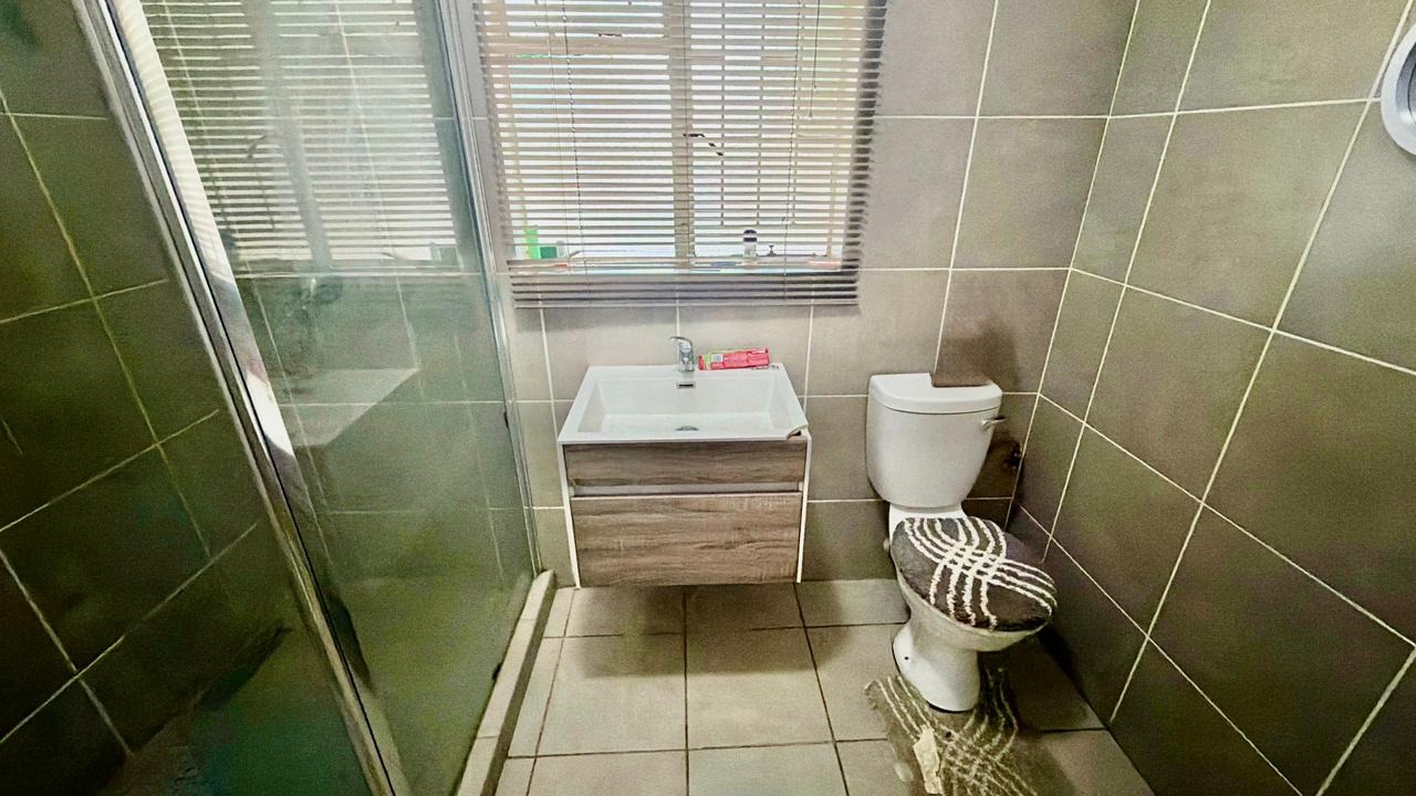 * Second bathroom with shower, basin, and toilet (tiled floor)