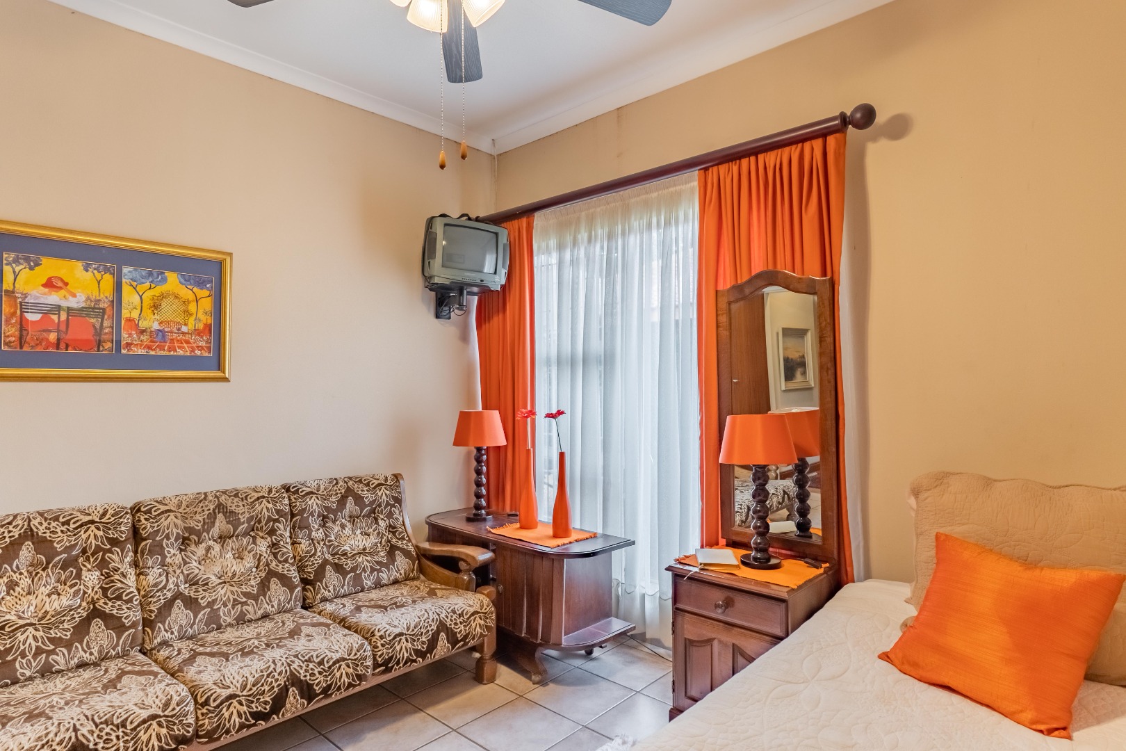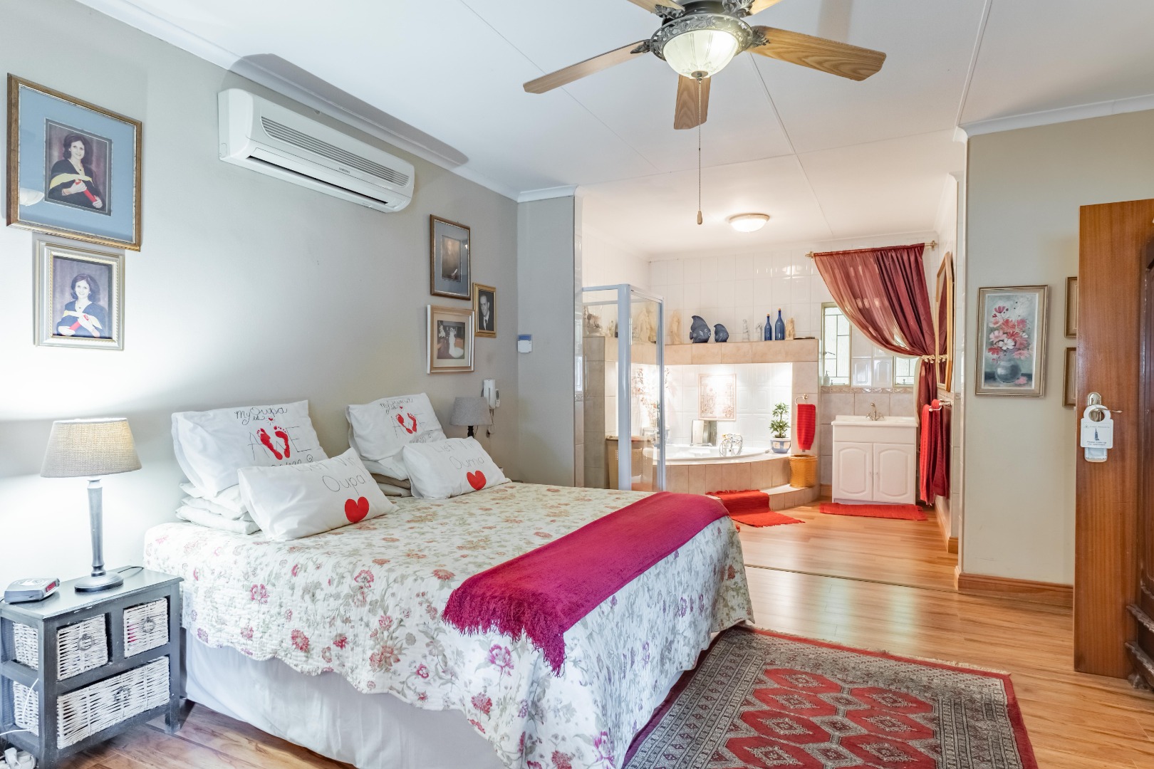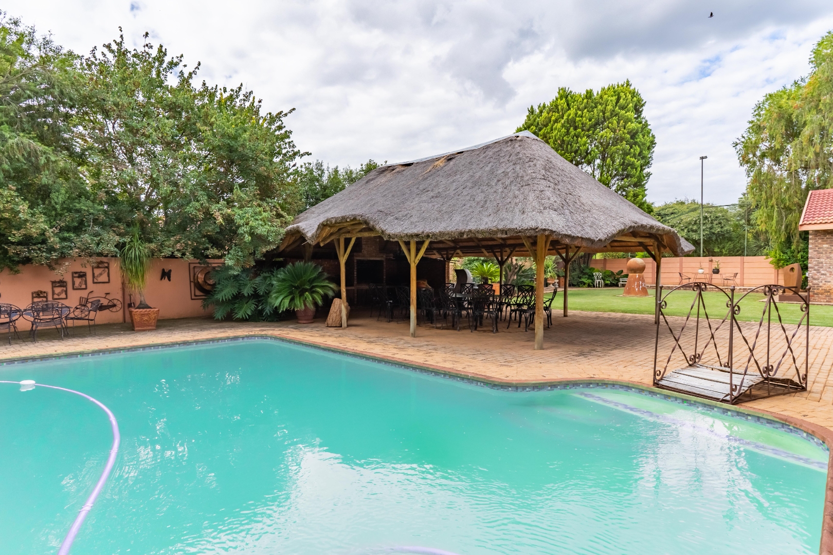 Very neat 4 Bedroom house with two flats. 1st flat has one bedroom, open plan lounge and kitchen. 2nd flat - Two bedrooms, both with full on suite bathrooms, lounge and kitchen. The house consists of 4 bedrooms, with two full bathrooms, lounge, dinning room, TV Room, Lapa with built in bar and braai, air cons and ceiling fans in most of the rooms, four carports, and swimming pool. Definitely a must see! Phone agent to make appointment.
