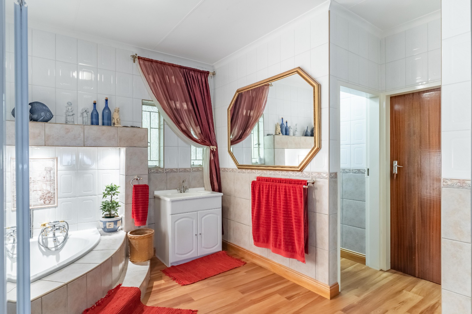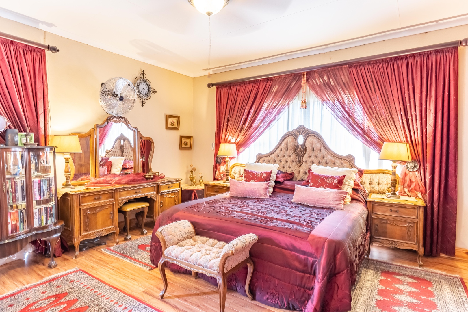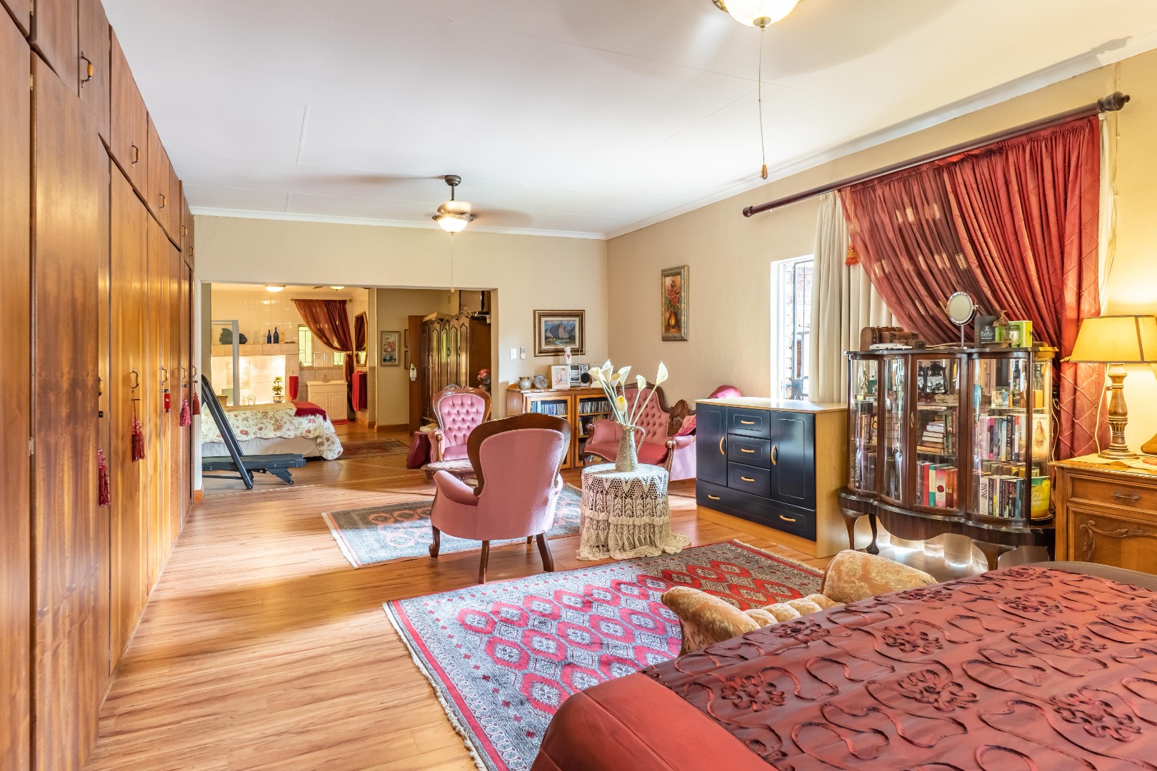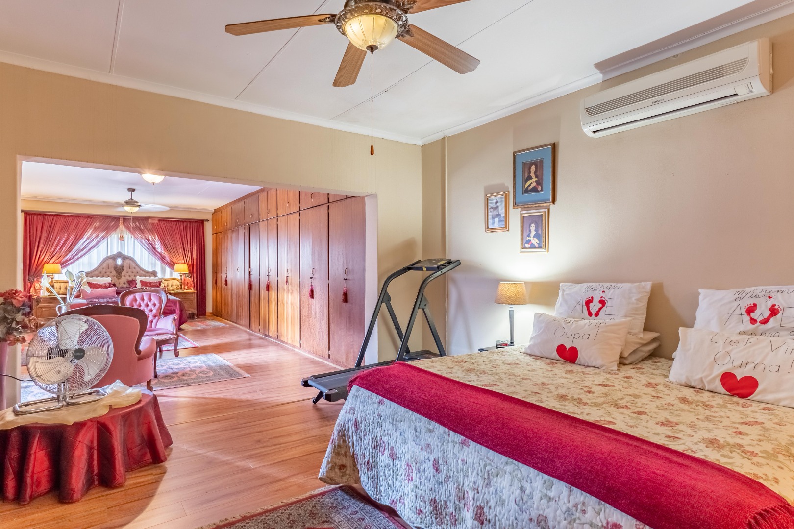 Very neat 4 Bedroom house with two flats. 1st flat has one bedroom, open plan lounge and kitchen. 2nd flat - Two bedrooms, both with full on suite bathrooms, lounge and kitchen. The house consists of 4 bedrooms, with two full bathrooms, lounge, dinning room, TV Room, Lapa with built in bar and braai, air cons and ceiling fans in most of the rooms, four carports, and swimming pool. Definitely a must see! Phone agent to make appointment.