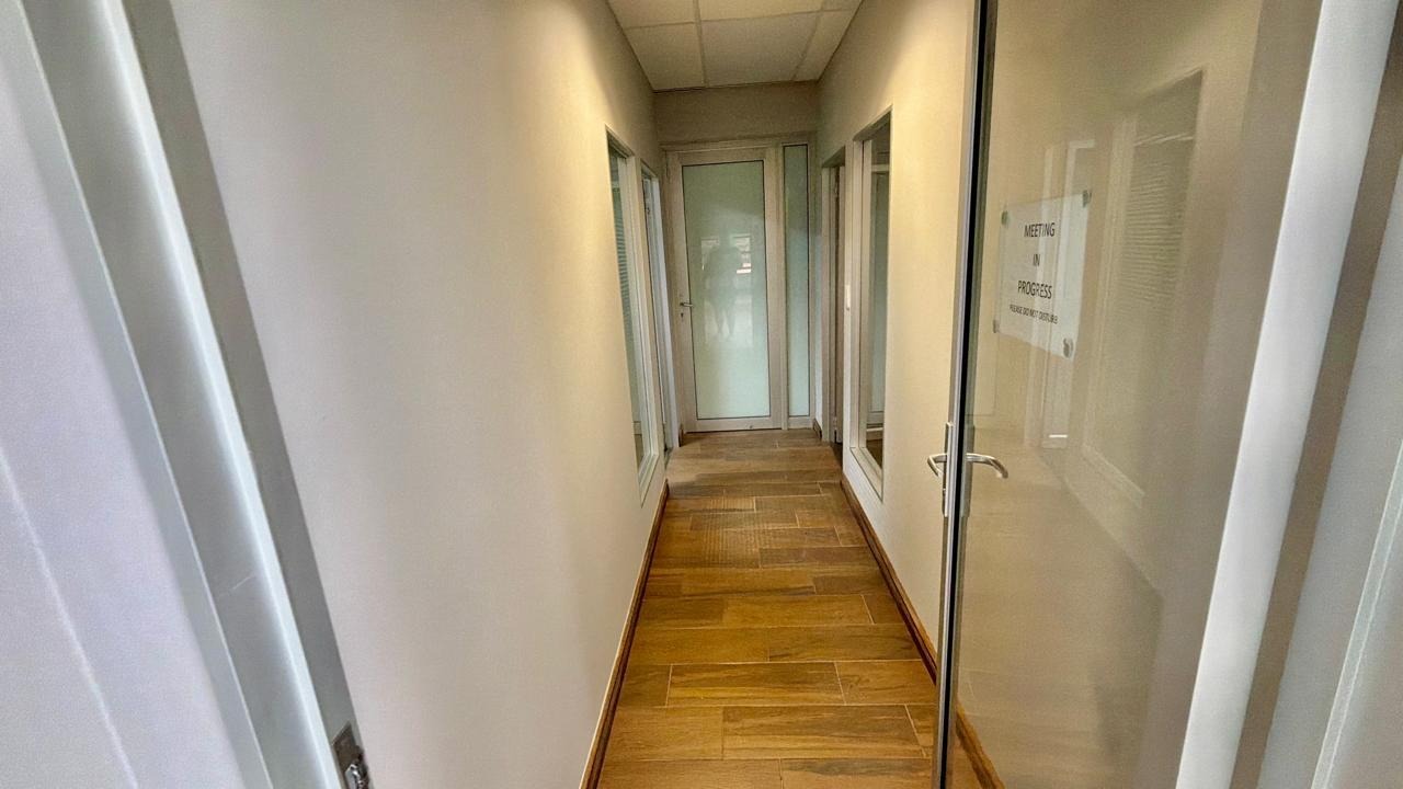 The property features seven private offices, each fitted with air conditioning, ensuring a comfortable workspace year-round. A large reception area provides a welcoming first impression and ample space for client interaction or administrative operations.
